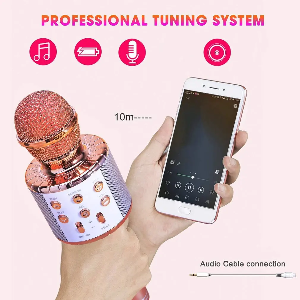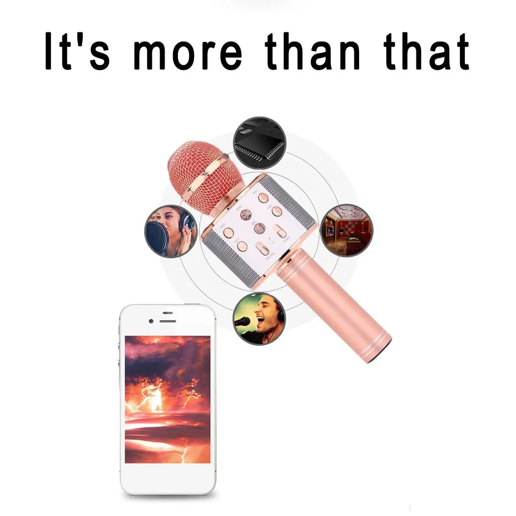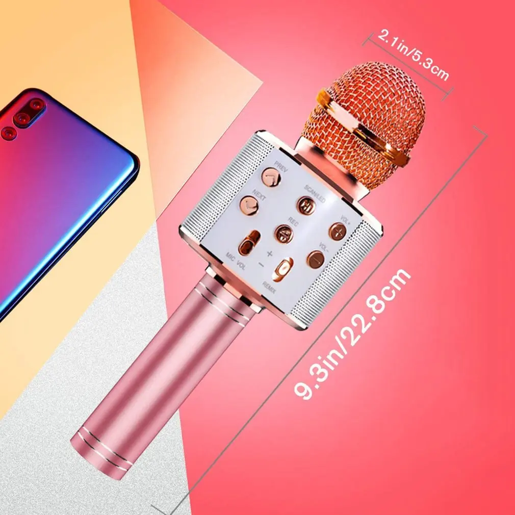 Особенности: 1. Беспроводная технология для снижения энергопотребления.2. Стабильное соединение и более высокая скорость передачи, эффективное беспроводное рабочее расстояние до 10 м.3. Он может подключаться к любым включенным смарт-устройствам.4. Использование: микрофон караоке/диктофон/динамик/громкоговоритель.Описание:Это BKTV- WS858 беспроводной караоке ручной микрофон, мульти караоке плеер.Характеристики: модель изделия: ws-858Вес продукта: 0,3 кгМощность динамика: 4Ω 3 ВтОтношение сигнал-шум: ≥ 85 дБЧастотный диапазон отклика: 150 ~ 20 кГцАудио-интерфейс источника: 3,5 мм стерео разъем для наушниковРазмер изделия: 22.5x7.6x7.6 смПосылка включает в себя:1 х KTV беспроводной караоке ручной микрофон(Включая аккумулятор)Примечания:1. Из-за разницы между различными мониторами изображение может не отражать фактический цвет изделия. Мы гарантируем, что модель реального изделия не отличается от представленной на фото.2. Возможны незначительные отклонения в размерах из-за различных измерений вручную.