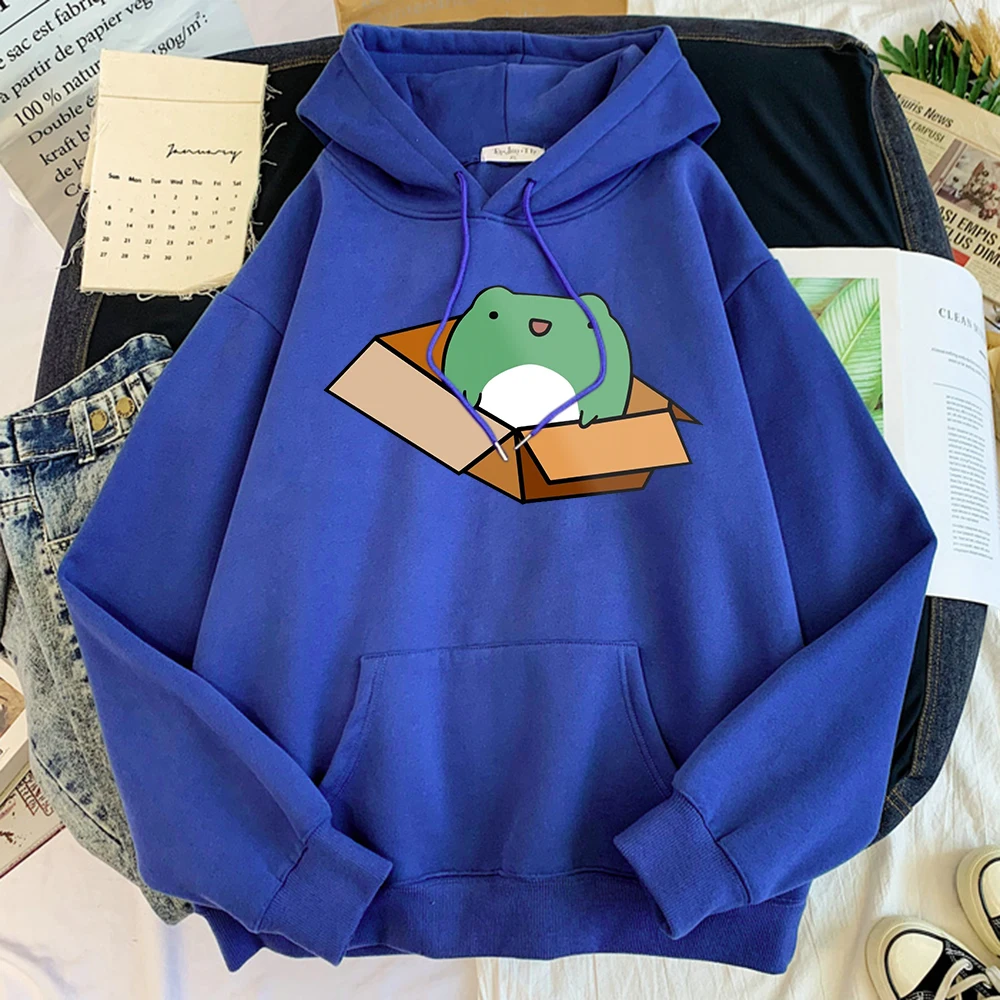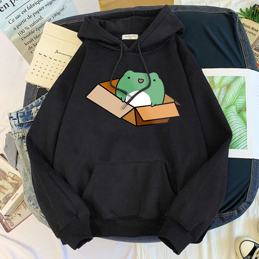 Осенняя Флисовая теплая кавайная Женская одежда с животными, маленькая лягушка в коробке, Женская худи с принтом, повседневный женский свитер