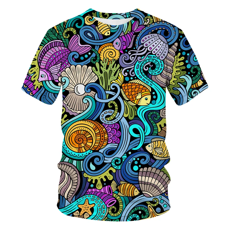 Подводный мир Рисунок мультфильм 3D печать футболка Ретро стиль Жен...