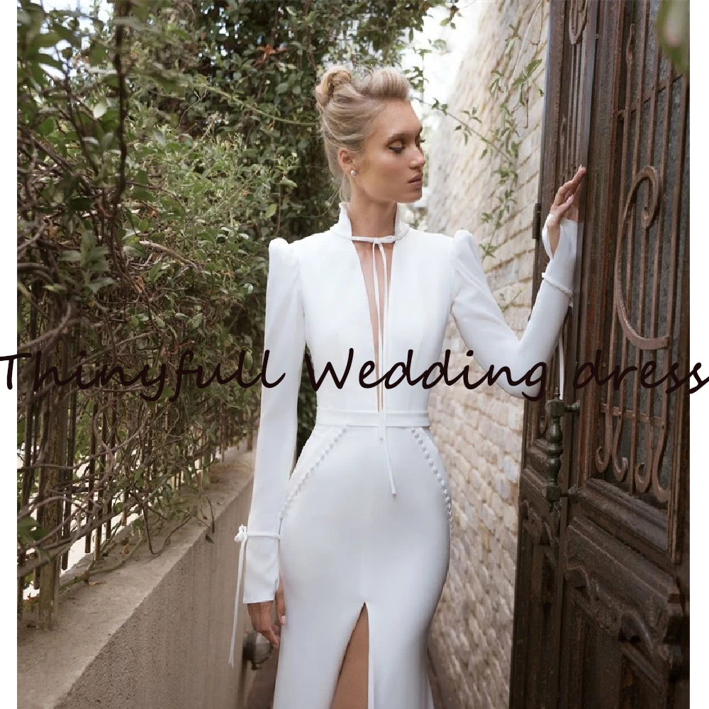 Thinyfull Свадебные платья с длинным рукавом и высоким воротником, ...