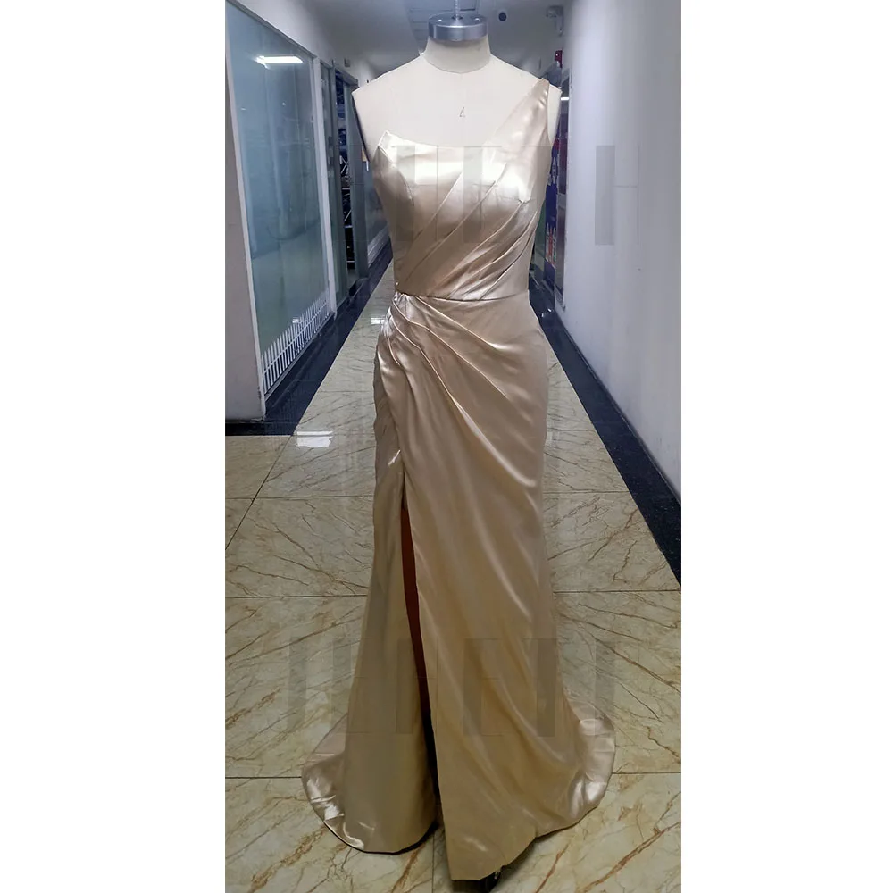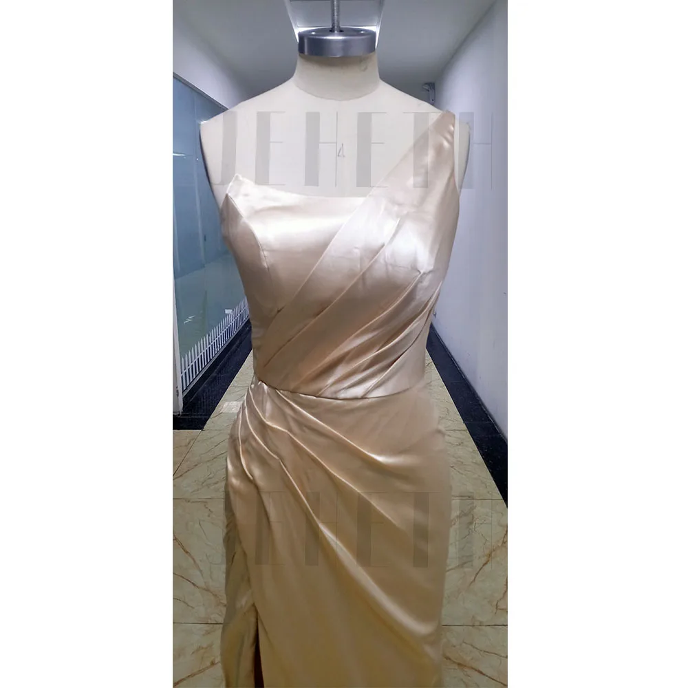 JEHETH простые Небесно-Голубые атласные вечерние платья с одним открытым плечом сексуальные платья с высоким разрезом вырезом лодочкой для выпускного вечера вечерние платья 2022