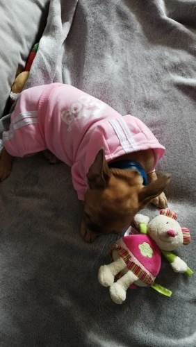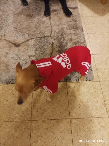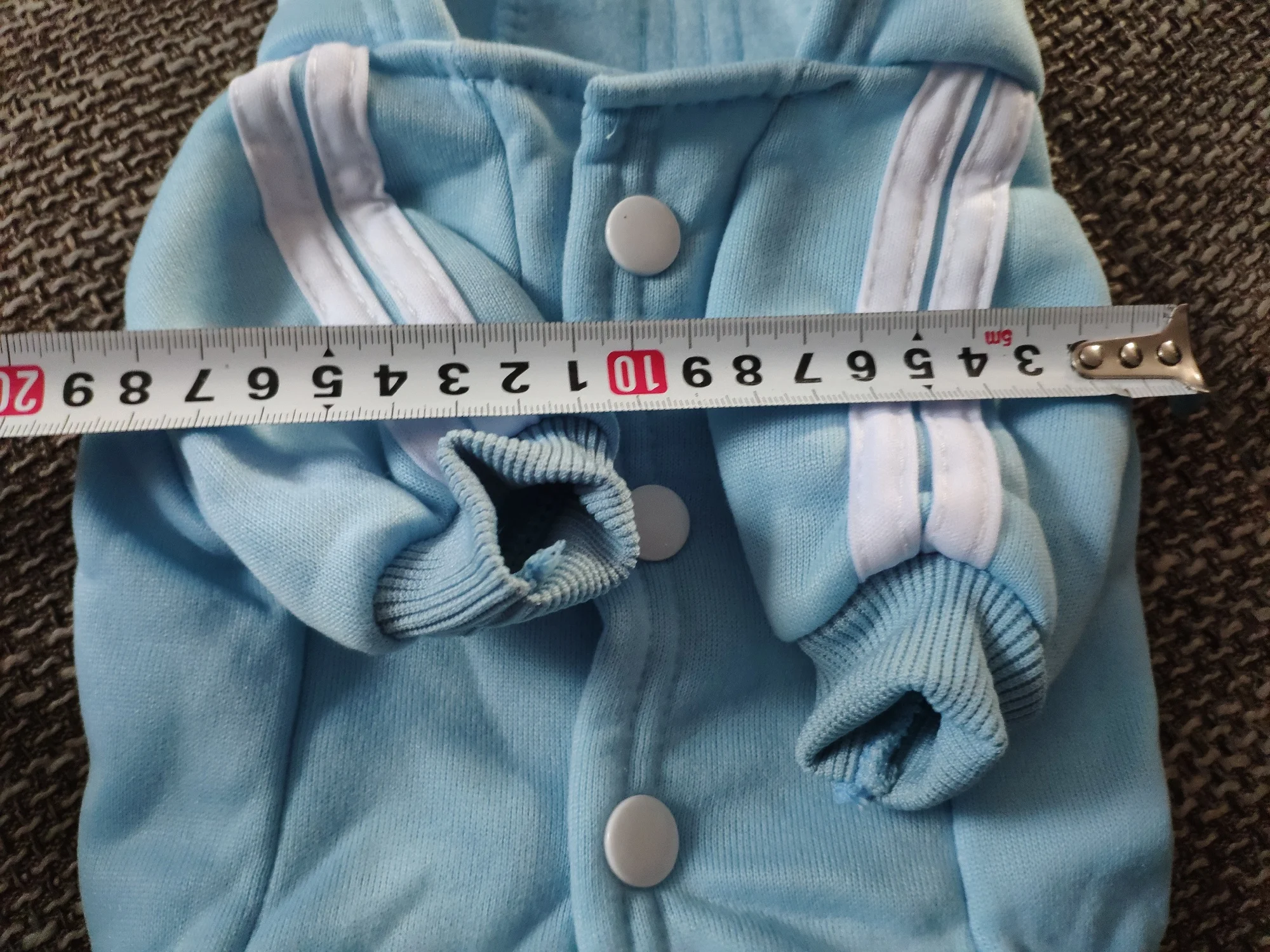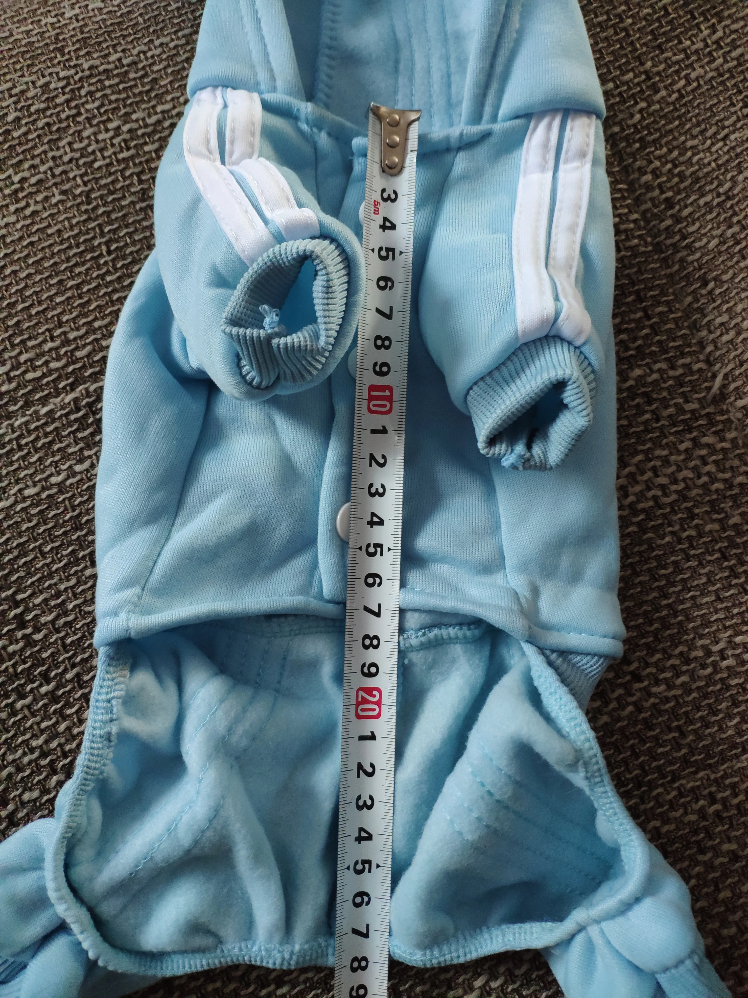 Спортивный костюм идеально подходит для моего suczkę bulldog French, который имеет 3,5 месяца и весит немного больше 4 кг. Размер хорошо выбирается в соответствии с размерами, указанными в таблице. Выглядит так же, как на фотографиях. Цвет точно такой же, как в наличии, когда вы заказываете этот спортивный костюм. Я доволен вашей покупкой. Когда мой большой выбор, вы можете выбрать другой цвет. Летний спортивный костюм для чихуахуа, 2,5 см. Упаковка для полировки в течение 14 дней.
