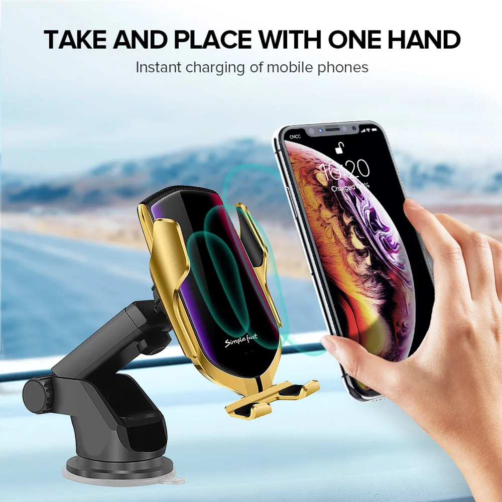 Автоматическое зажимное 10 Вт беспроводное автомобильное зарядное устройство QI Быстрая зарядка держатель для телефона крепление для iPhone 13 12 11 Pro XR 8 Samsung S21 S20 S10