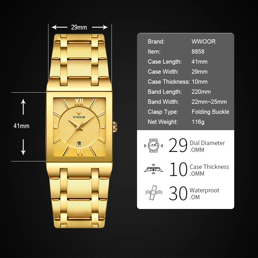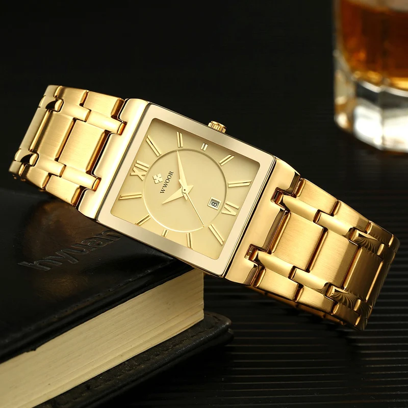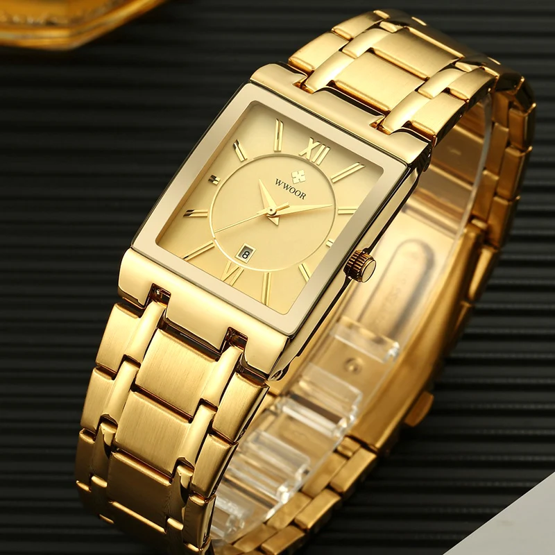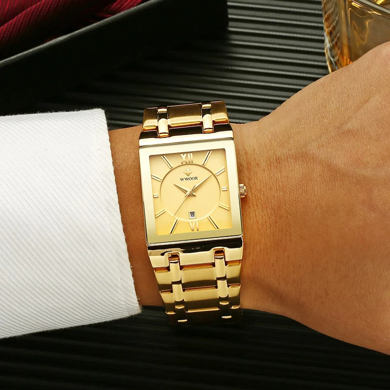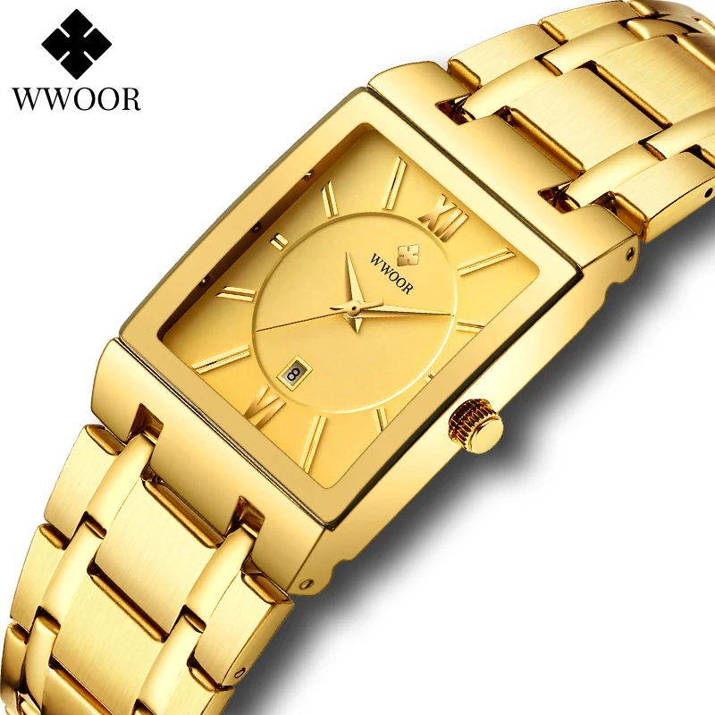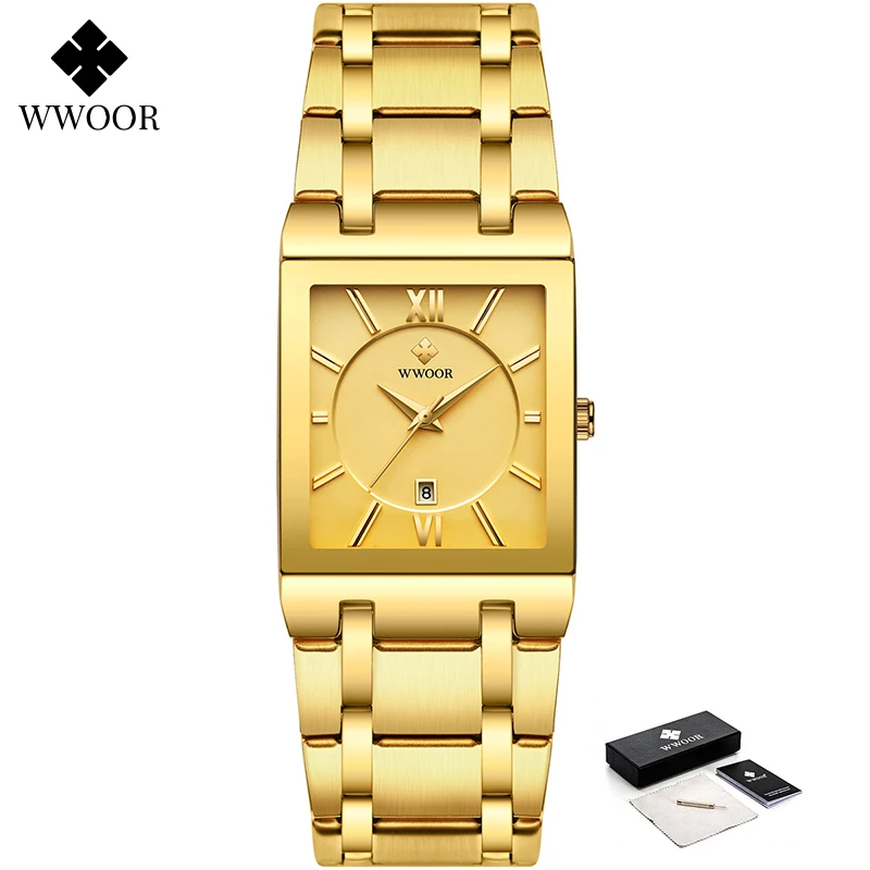 WWOOR Geneva дизайнерские квадратные часы для мужчин с автоматической датой