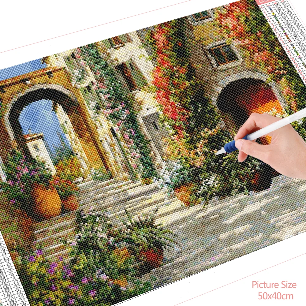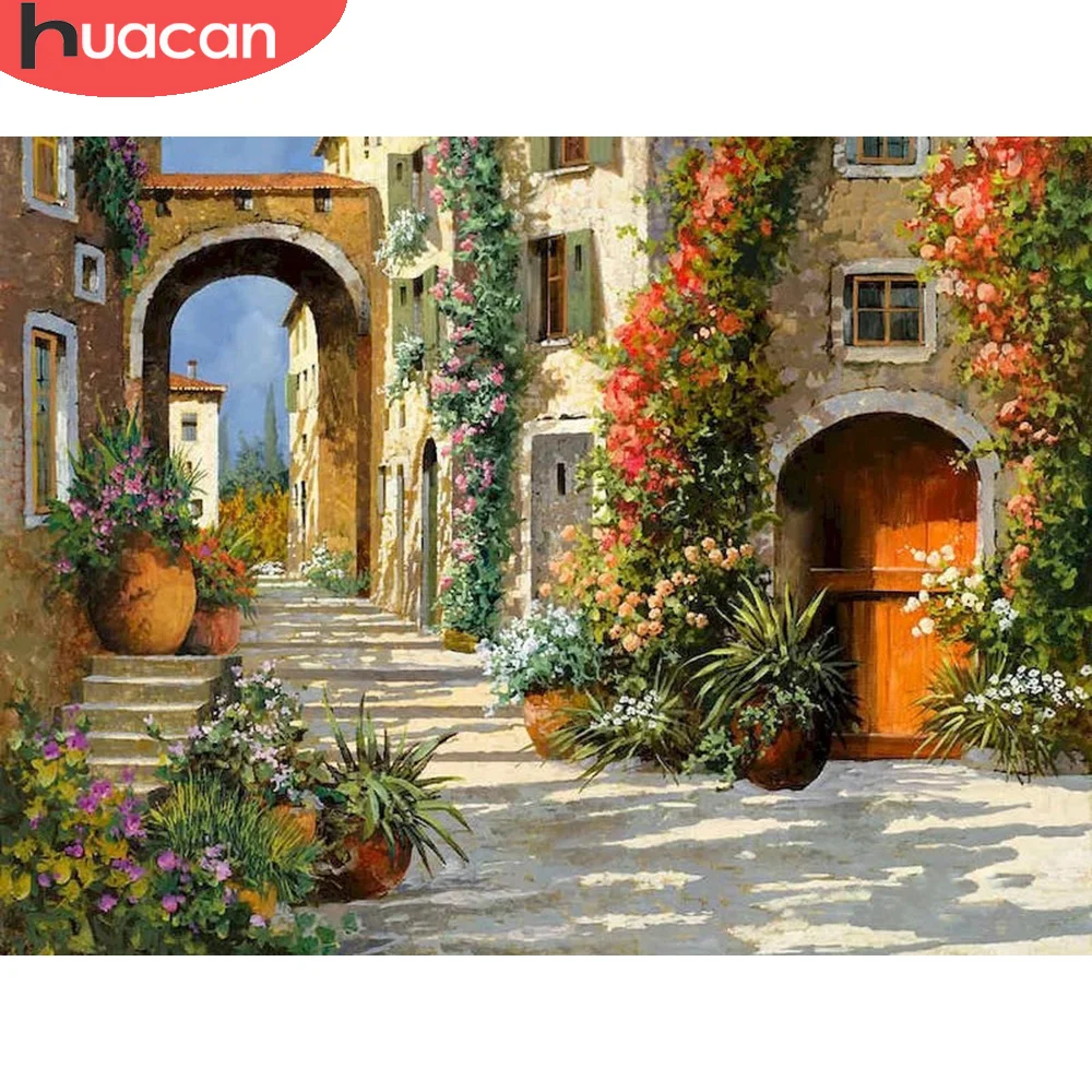 Алмазная мозаика HUACAN, полноразмернаякруглая вышивка, для сада, украшение для дома