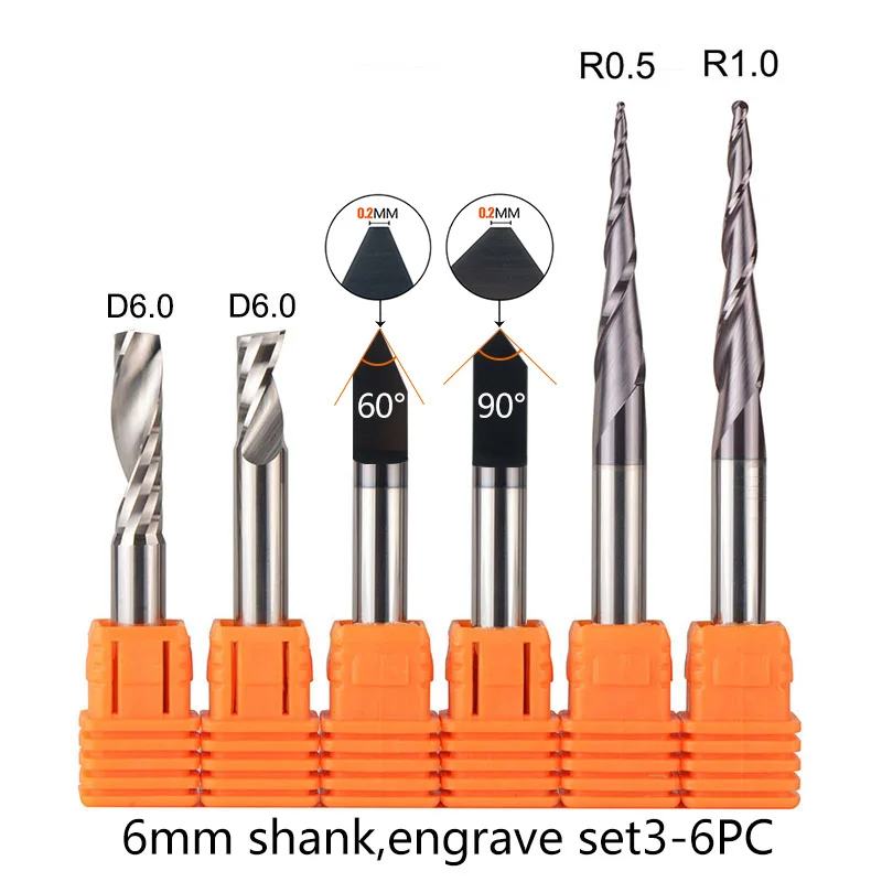 Dreanique 6 шт.лот Концевая фреза CNC 6 мм хвостовик гравировальный резак набор твердосплавный фреза для деревообработки Alunimiun медь