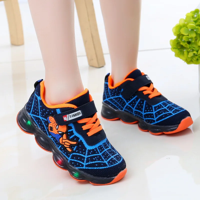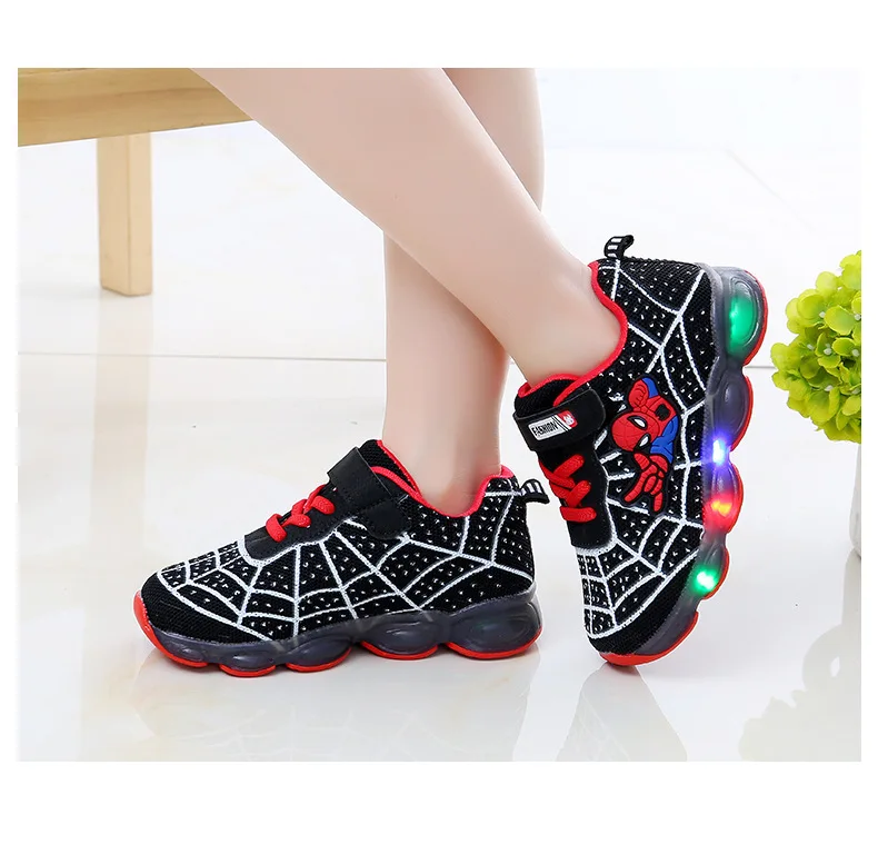 Детские светящиеся кроссовки Человек-паук со светодиодной подсветкой