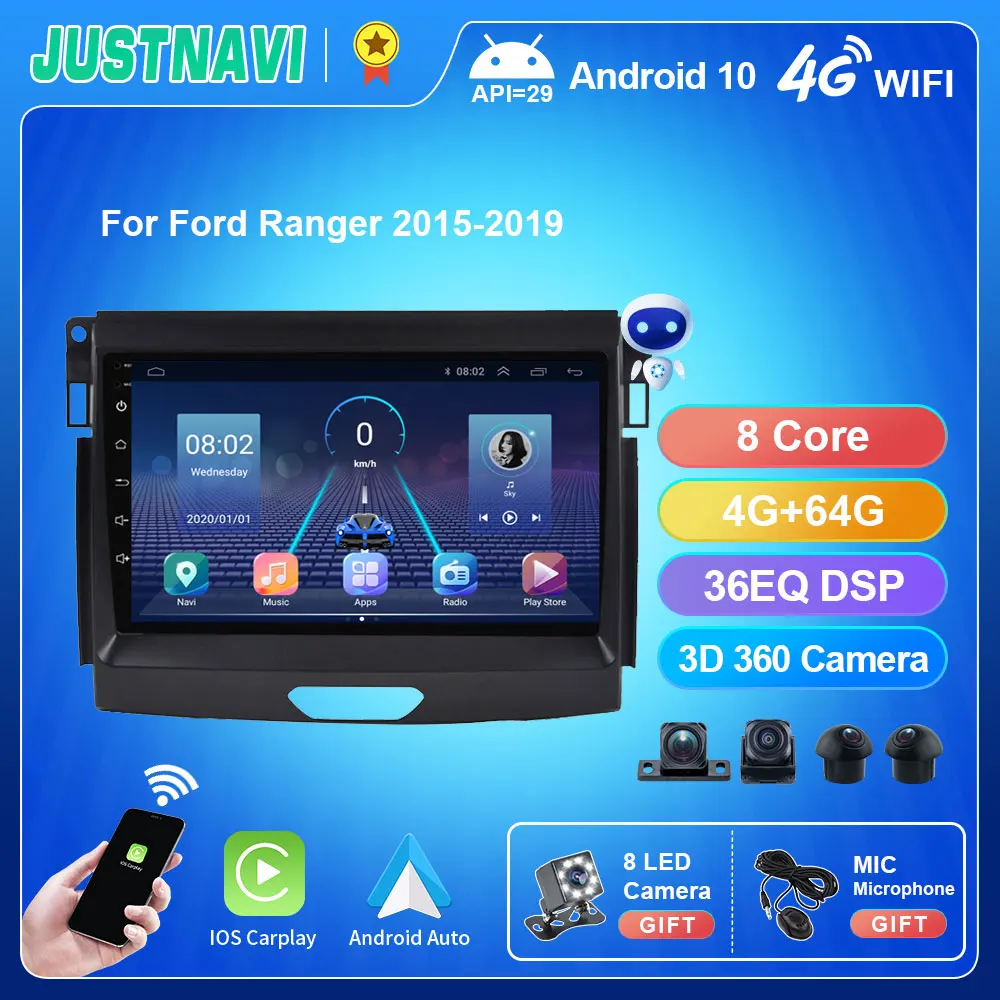 Автомобильный радиоприемник JUSTNAVI QT5 LTE для Ford Ranger 2015-2019, Wi-Fi, 4G, навигация, GPS, мультимедийный плеер, CarPlay, автомобильное стерео, 2din, Авторадио 9'