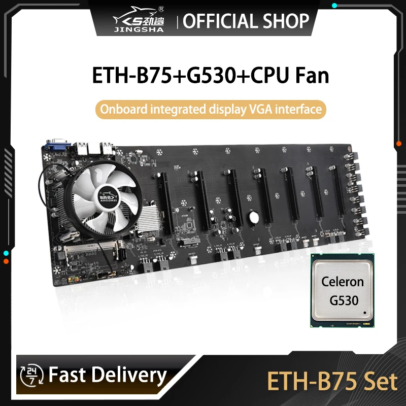 JINGSHA, новая системная плата для майнинга, B75 8PCI-E 65 мм, материнская плата DDR3, Память ОЗУ с процессором G530 и вентилятором LGA 1155, криптомобо