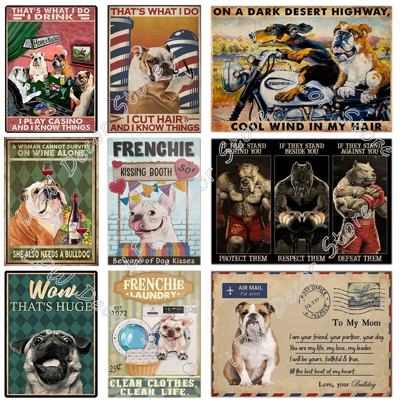 Рисунок на холсте с изображением собаки, бульдога, щенка
