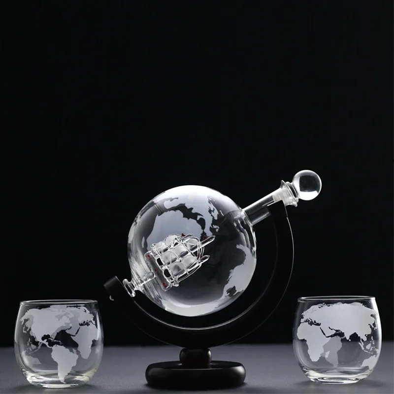 Элегантный графин-дозатор для виски с вытравленным дизайном в виде глобуса и антикварным кораблем в бутылке, несомненно, улучшит ваш опыт питья, создав смелое впечатление. Емкость графина 850 мл-емкость коктейльного стекла 250 мл. Отличный разговор на любые вечерние. Также можно использовать для подачи воды, сока, соды, чая со льдом и других напитков.
