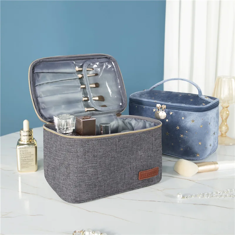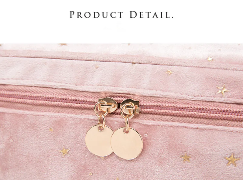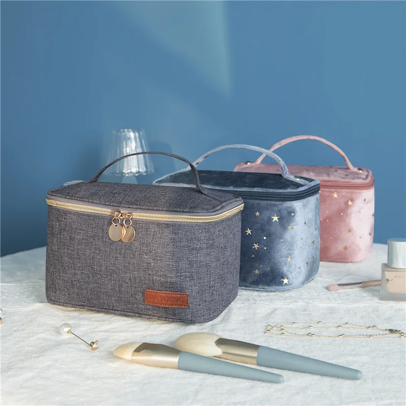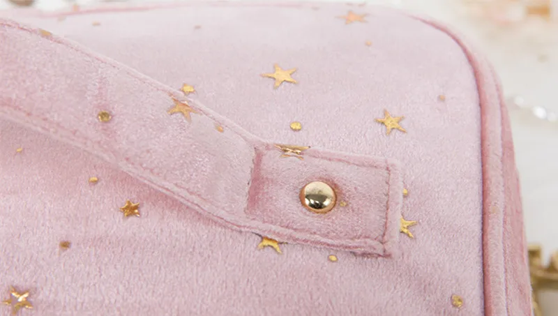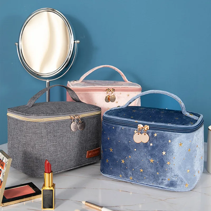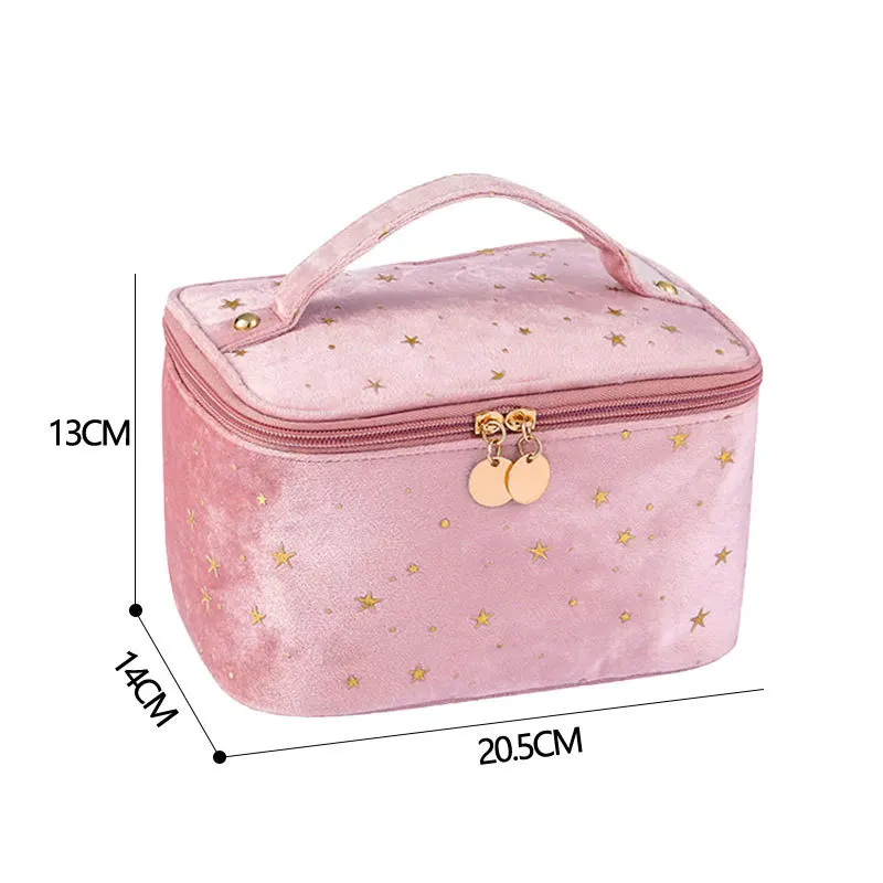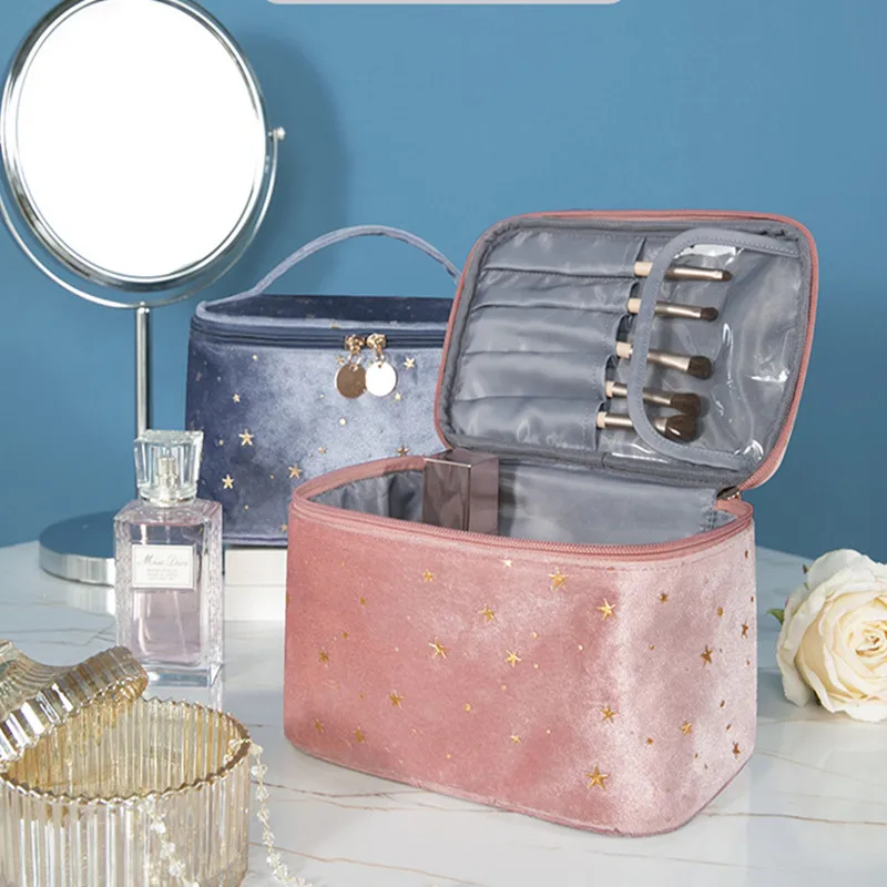 Новая сумка для макияжа, вместительные косметические Чехлы для губной помады, дорожные Чехлы для туалетных принадлежностей, Женский органайзер, бархатная ткань с золотыми звездами