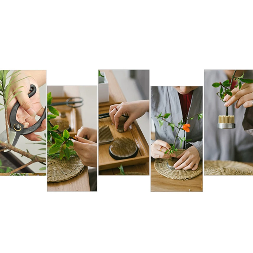Round Ikebana Kenzan Flower Holder Floral Arrangement Pin Flower Art Fixed Tools Copper Needle Rubber Base Holder
