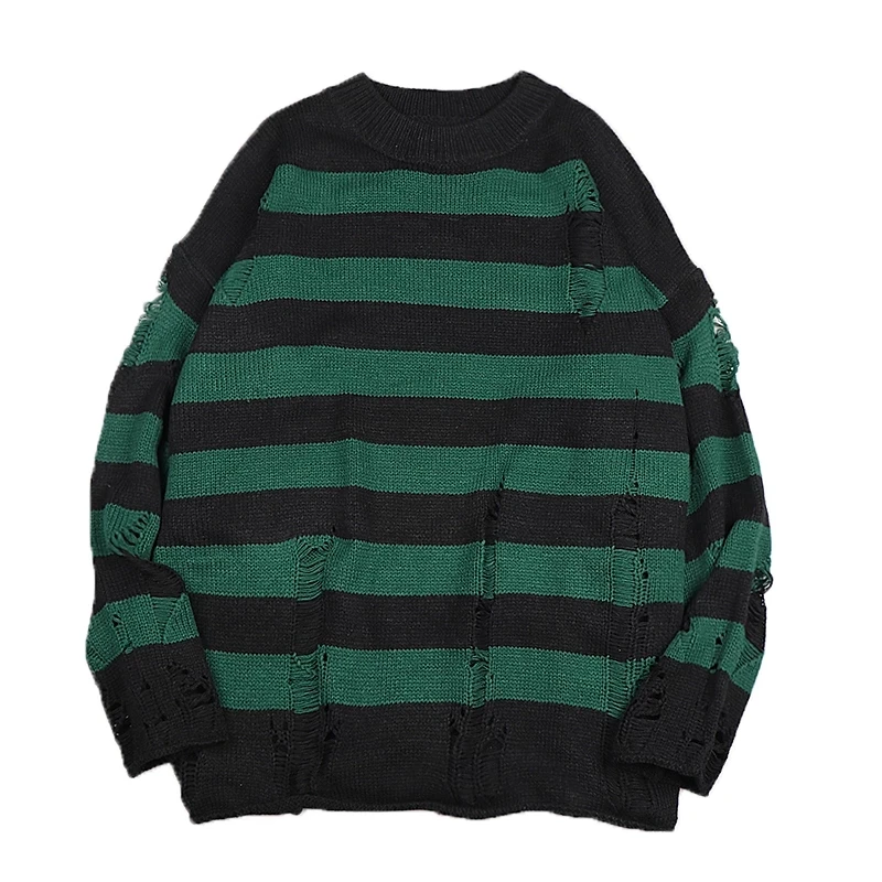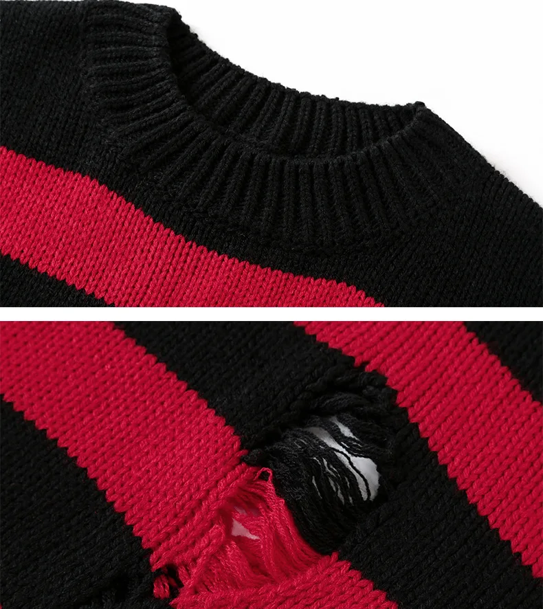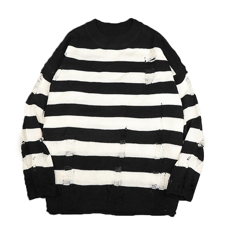 2022 Черные Полосатые свитера Разорванные мужские и женские пуловеры дырками вязаный джемпер оверсайз кофты Харадзюку Топы с длинным рукавом