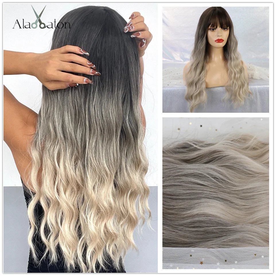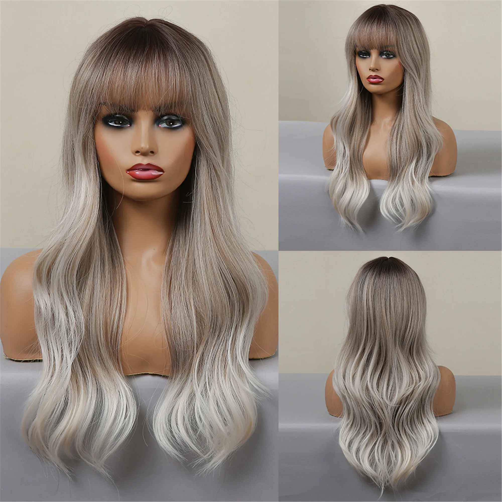 Парики с челкой для женщин, Длинные Синтетические волосы с волнами,...