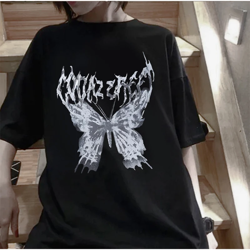 Футболка большого размера, в стиле Харадзюку, Y2K, с бабочками