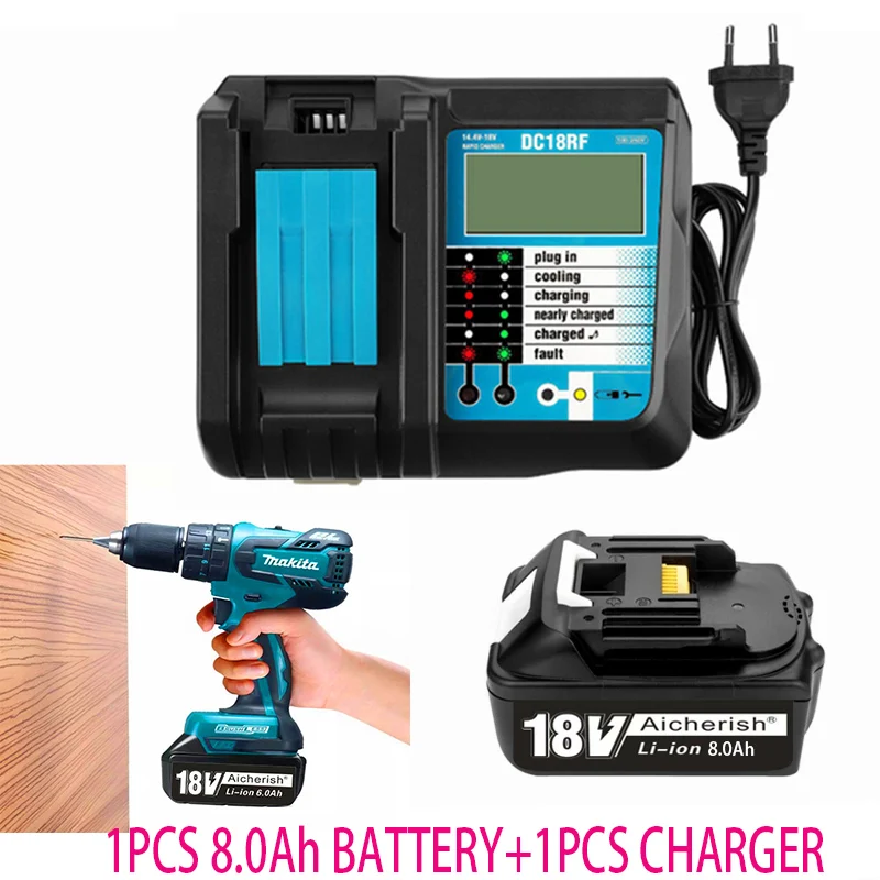 Аккумулятор Makita 18 в с зарядным устройством BL1860B, перезаряжаемые аккумуляторы 18 в 8000 мАч, литий-ионный аккумулятор для 8Ah BL1840 BL1850 BL1830 BL1860