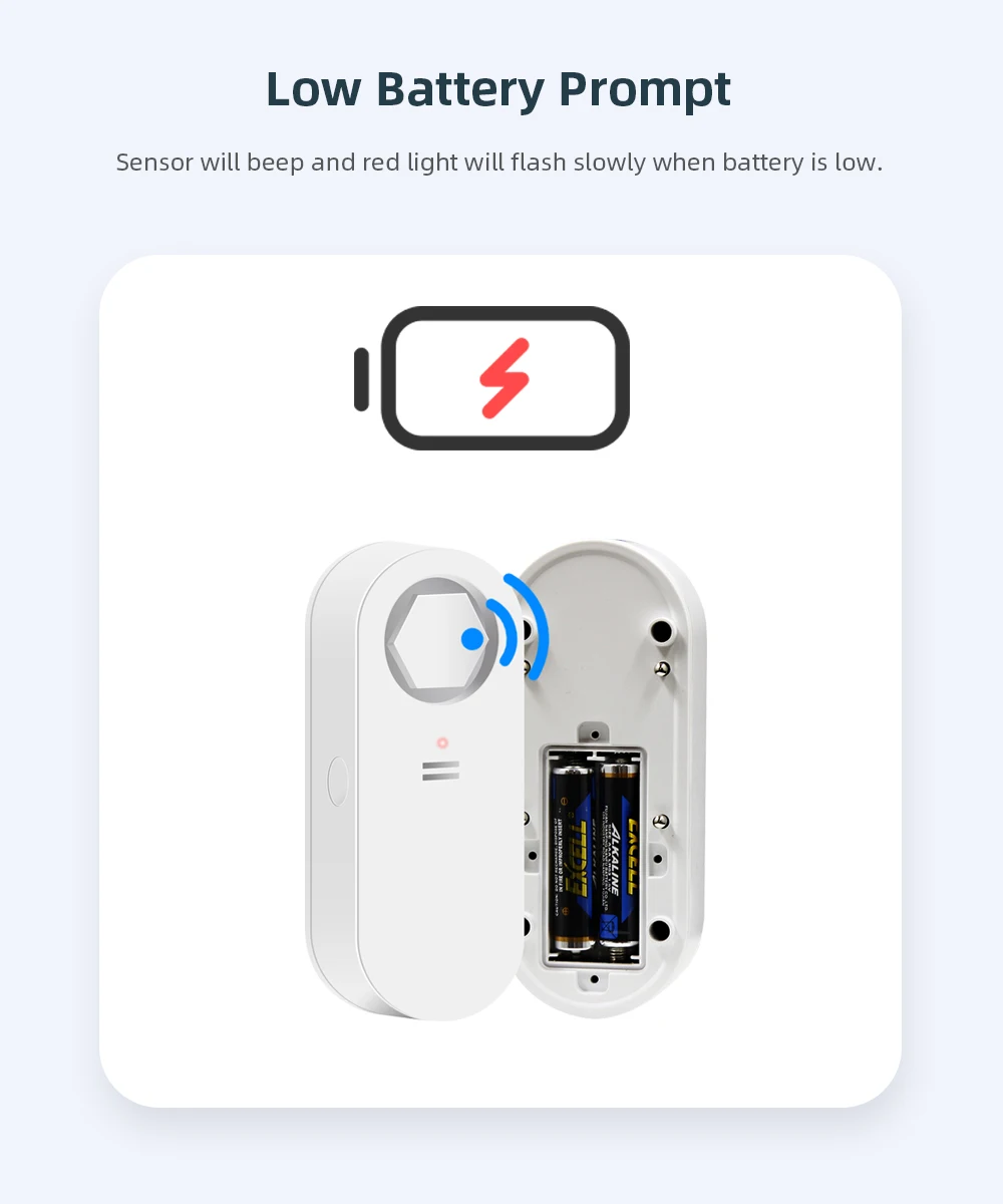 -100% без проводов, может работать автономно для локального оповещения и подключаться к приложению для дистанционного управления.-Подключение Wi-Fi 2,4G, не требуется концентратор-Звуковой сигнал 120 дБ.-Когда датчик обнаруживает утечку воды, он издаст сигнал тревоги, и приложение будет нажимать уведомления-Встроенный аккумулятор 2xAA с функцией оповещения о низком заряде батареи-Установите варианты в приложении, например, когда датчик воды Обнаруживает утечку воды, используйте Умный клапан для выключения воды-Скачать бесплатное приложение «TuyaSmart» или «Smart Life» на iOS и Android
