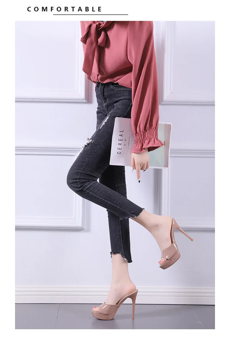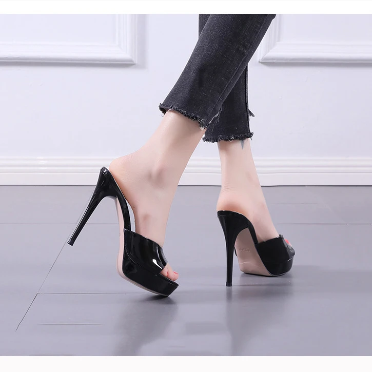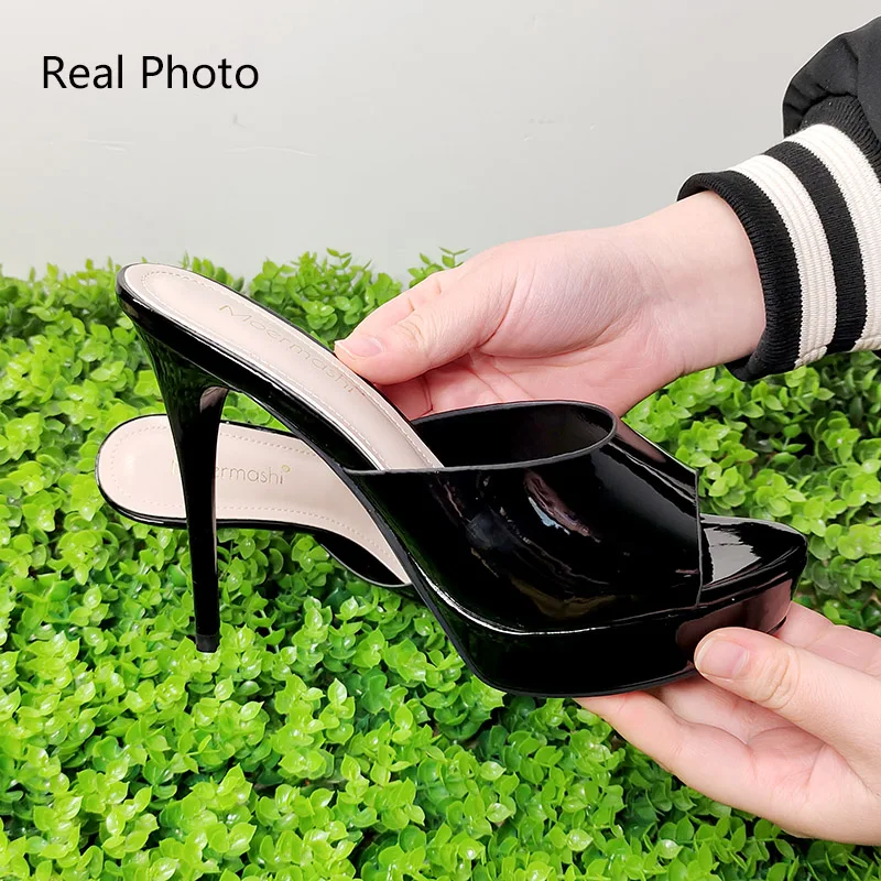 Шлепанцы женские на высоком каблуке, сандалии на высоком каблуке 12 см, пикантные Клубные босоножки на тонком каблуке для вечеринки, летние