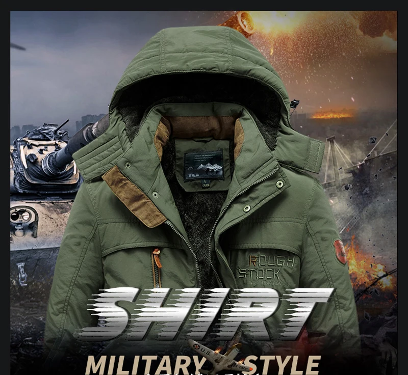 Зимняя мужская куртка в стиле милитари, плотная Теплая мужская парк...