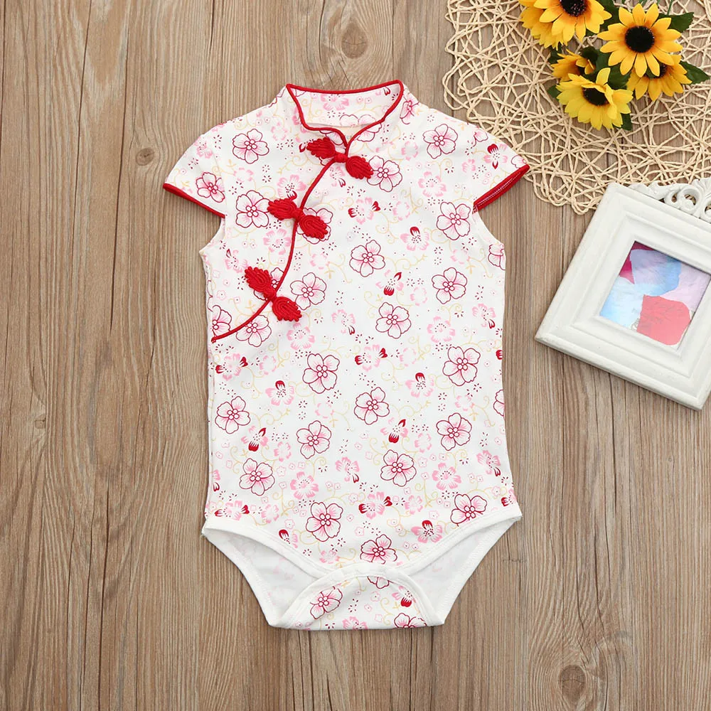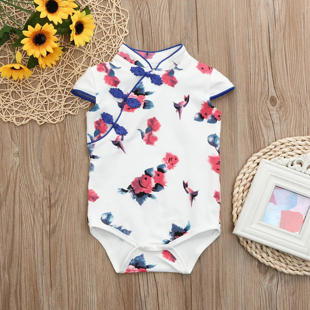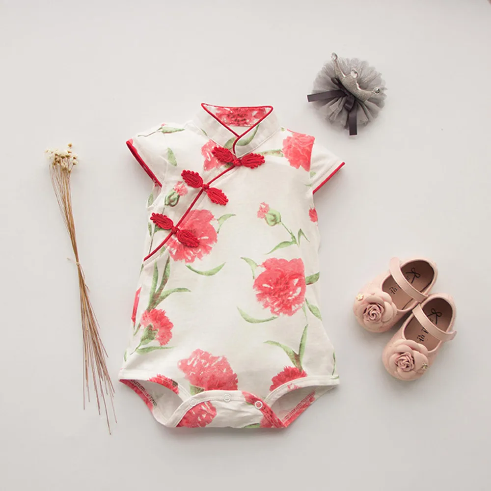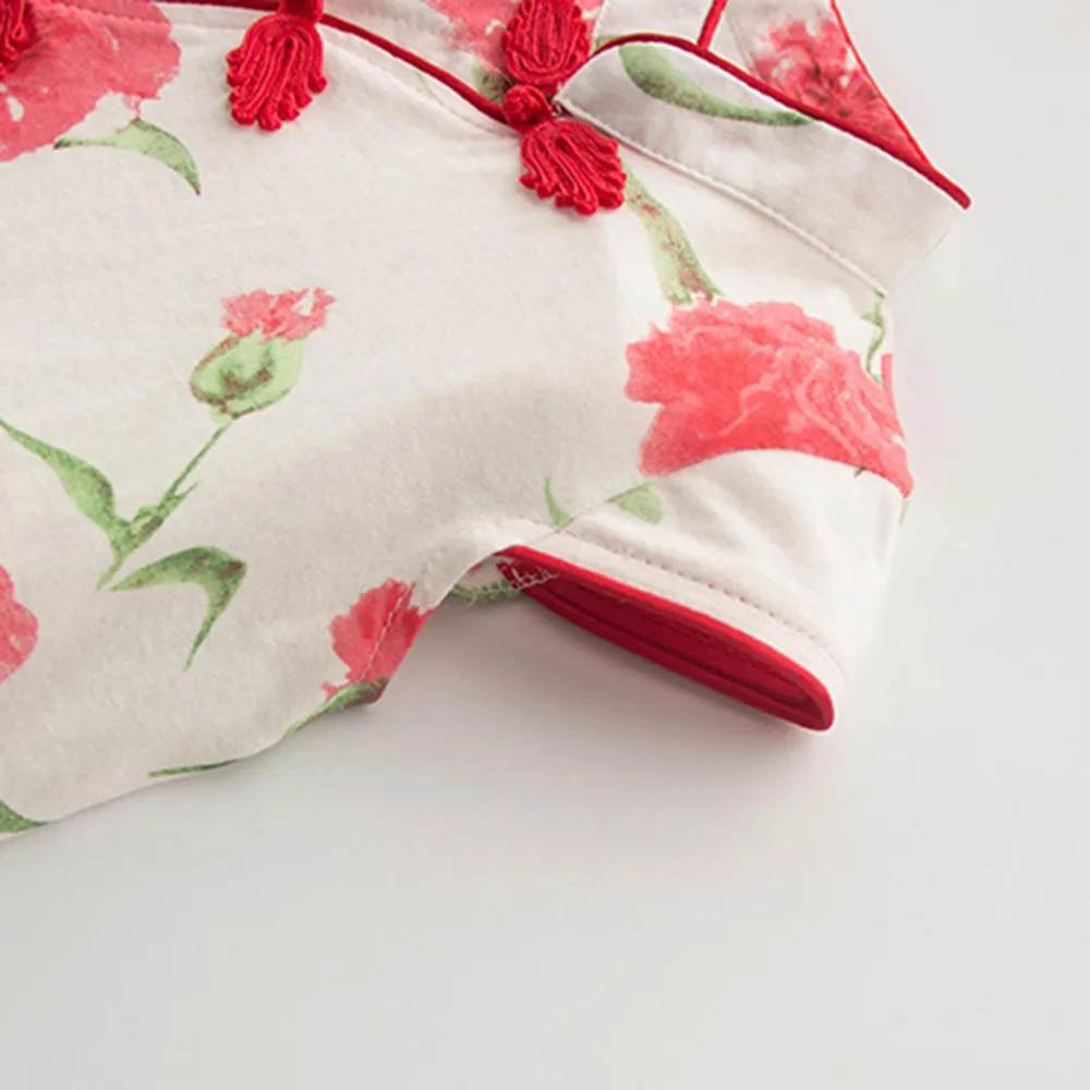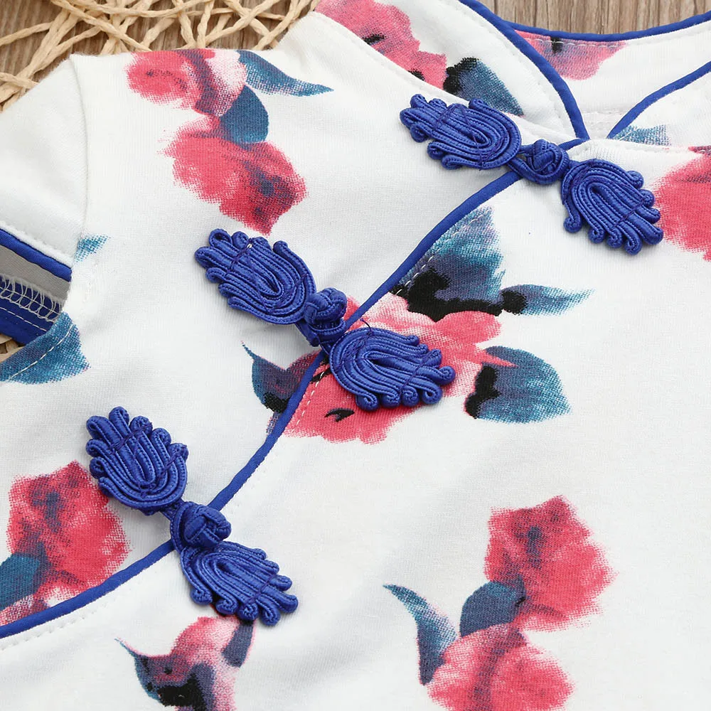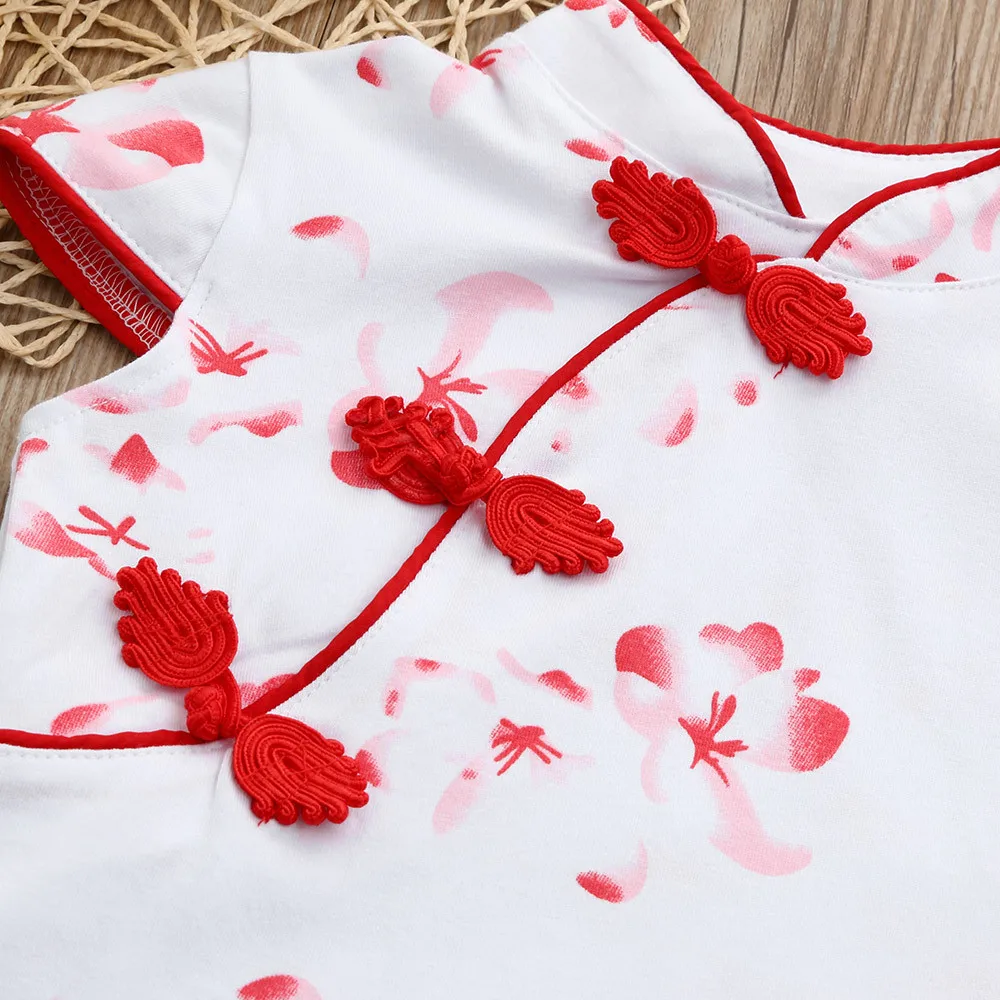 Cheongsa без рукавов с принтом розы для маленьких девочек