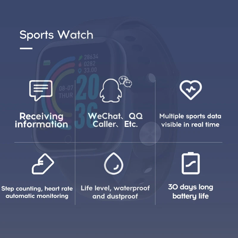 Спортивные умные часы D20 для мужчин и женщин, модные съемные наручные часы с функцией измерения кровяного давления, пульса, для Android и ios