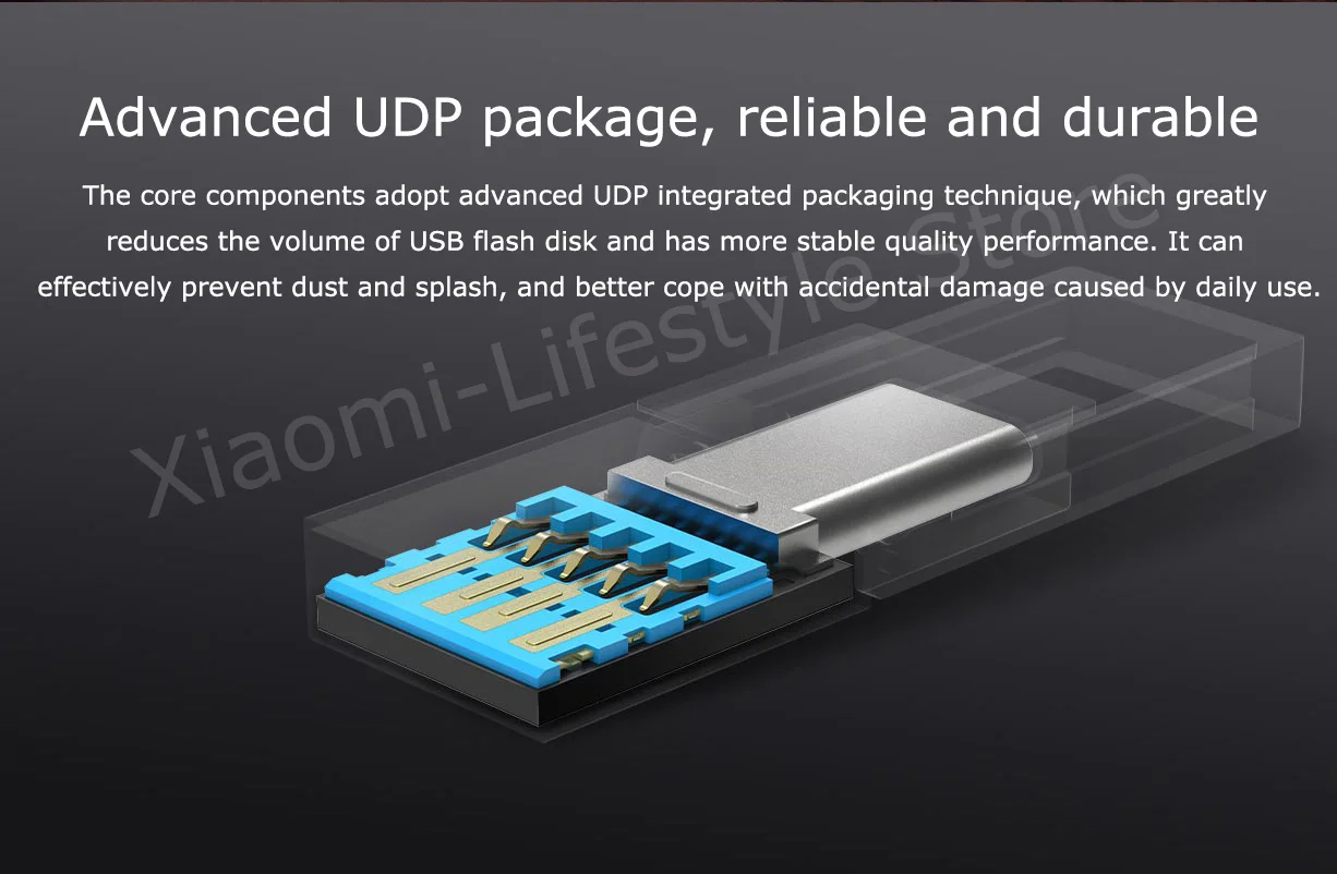 Основные компоненты используют передовую интегрированную упаковочную технику UDP, которая значительно уменьшает объем USB флэш-диска и имеет более стабильную производительность качества. Он может эффективно предотвращать попадание пыли и брызг и лучше справляться с случайными повреждениями, вызванными ежедневным использованием.