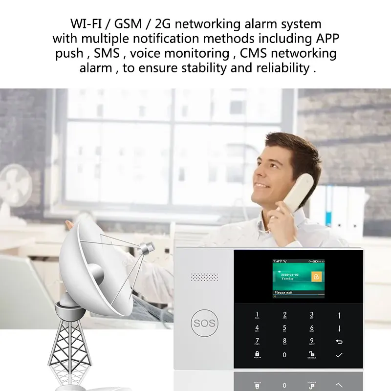 Wi-Fi/GSM / 2G система сетевой сигнализацииС несколькими способами уведомления, включая приложениеPush, SMS, голосовой мониторинг, CMS сетьСигнализация для обеспечения стабильности и надежности.