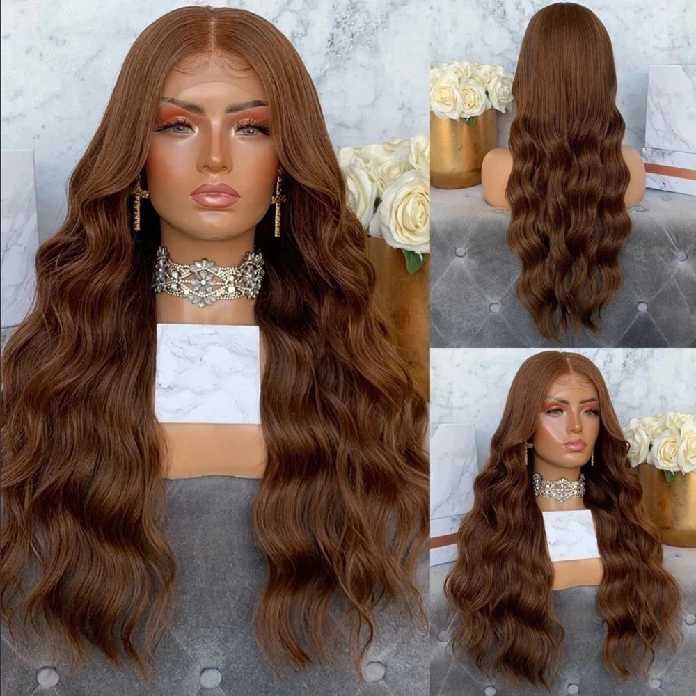 Длинный волнистый коричневый парик Gossamelle, синтетический парик на шнуровке спереди для женщин, средней части, на шнуровке, дешевые модные парики на шнуровке