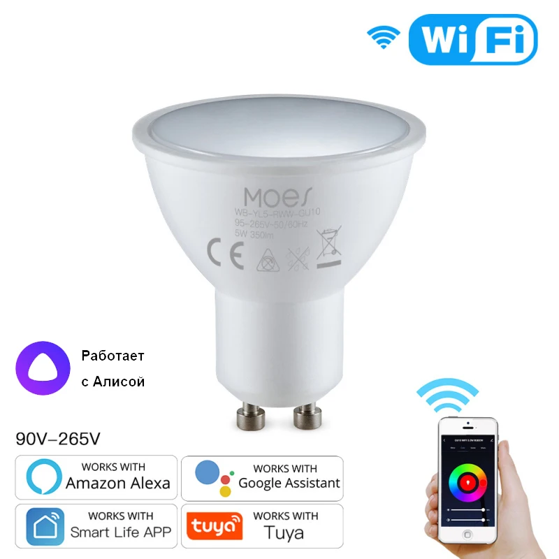 AUBESS tuya 5 Вт WiFi умная лампа светодиодный светильник с регулируемой яркостью GU10 RGB C W работает с Alexa Google Home Smart Life Yandex Alice