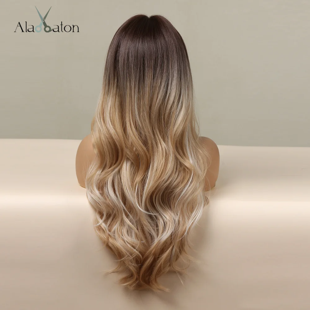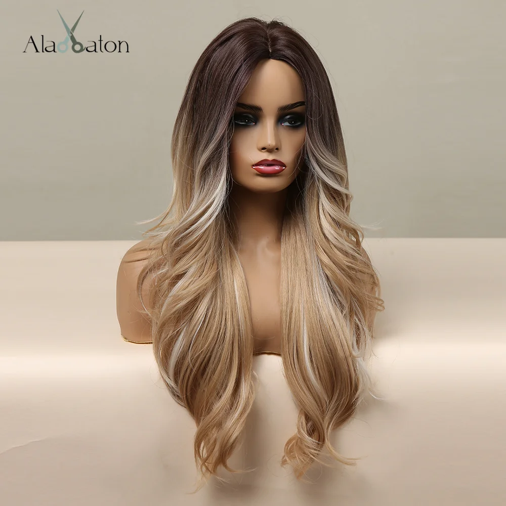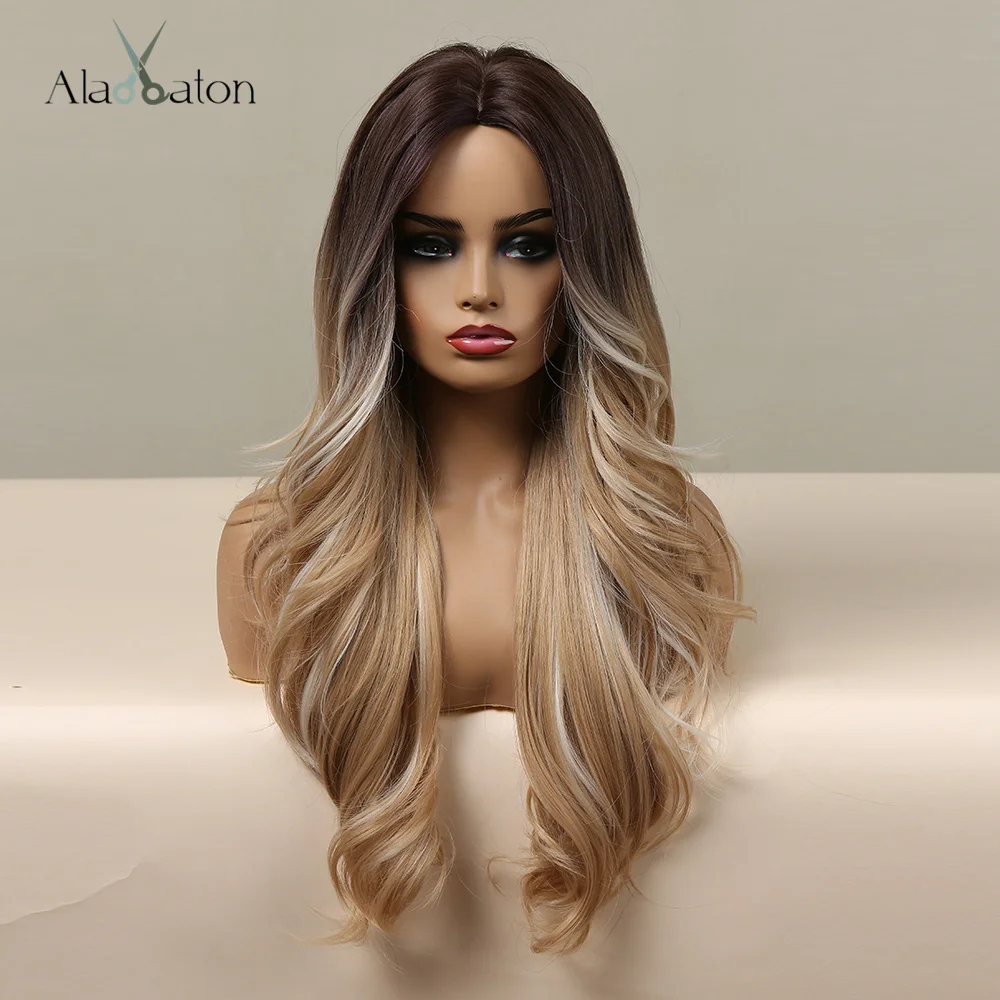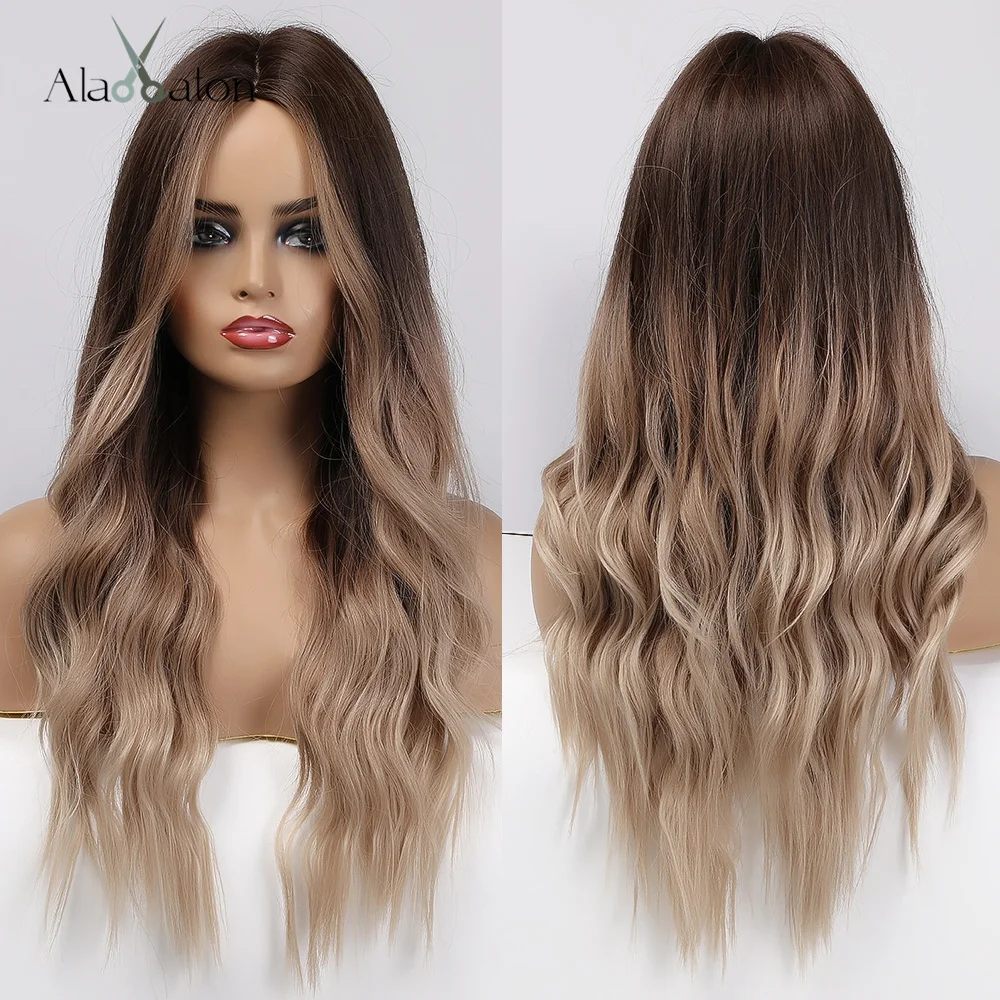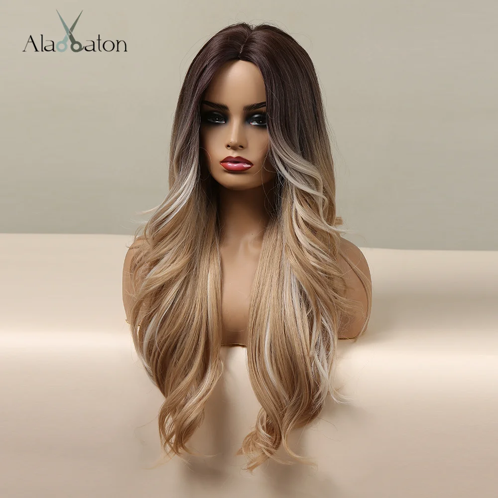 ALAN EATON, длинный парик из натуральных волн, синтетический, для женщин, Омбре, темно-коричневый, золотой, блонд, хайлигт, парики средней части, термостойкие