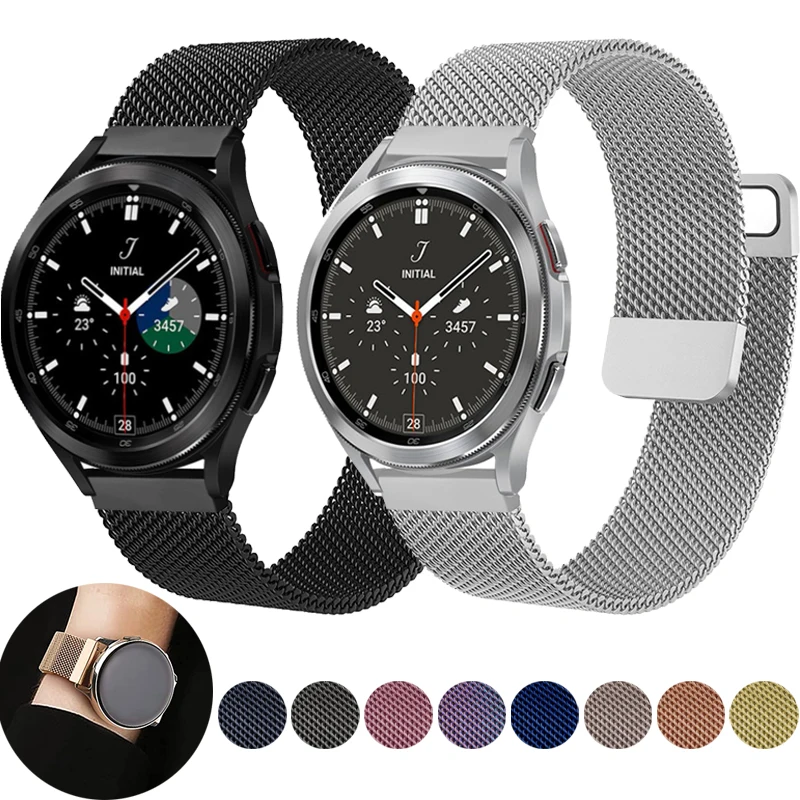 Совместимость 20 мм:Для Samsung Galaxy Watch 4 44 мм 40 ммДля Samsung Galaxy Watch 4 Classic 46 мм 42 ммДля Samsung Galaxy Watch 3 41 ммДля Samsung Galaxy Watch Active/ Active2 40 мм 44 ммДля Samsung Galaxy Watch 42 ммДля Huawei Watch 2 / watch 2 pro / watch GT-2-2e-Pro 42 мм/Honor Magicwatch 2 42 ммДля Samsung Gear S2Для Samsung Gear SportДля Moto 360 2nd Gen Мужской 42 ммДля Fossil Q GazerДля Huami Amazfit bip-U-S/ GTR 42 мм/GTS-2-2e miniДля Ticwatch 2 / Ticwatch EДля Garmin Vivoactive 3 / vivomove HR sport / Forerunner245 /Forerunner64522 мм Совместимость:Для Samsung Galaxy Watch 3 45 ммДля Samsung galaxy watch 46 мм,Для Samsung gear S3,Для Huawei watch GT-2-2e-Pro 46 мм,Для Honor MagicWatch2 46 мм/Magic/watch Dream,Для Huami amazfit GTR 47 мм/pace/stratos,Для Huami AMAZFIT 2 stratoS,Для цветных часов Xiaomi,Для Garmin vivoactiveДля Fossil Gen 5 Carlyle /Julianna /Garrett /Carlyle HR,Для Fossil Hybrid Smartwatch HR,Для исследования Fossil Men's Gen 4 HR,Для спорта FossilДля ticwatch pro/ E2/S2,Для pebble time,Для производства гальки,Для Asus Vivowatch/ZENWATCH/ZENWATCH2 men'sДля LG W100/LG W110/LG W150Для ZTE Quartz/MOTO360 46 мм версияМатериал: нержавеющая стальЗастежка: Магнитная ПетляЦвет: 11 цветов, серебряный, черный, золотой, розовое золото, розовое золото, винтажное золото. Синий. Красный и т. Д ..Особенности: удобные, дышащие, элегантные и модныеВ посылка:1 * ремешок для часов