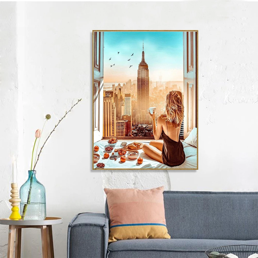 HUACAN живопись маслом по номерам женщина портрет подарок картина по номеру город пейзажные наборы DIY рамка рисунок на холсте Ручная роспись