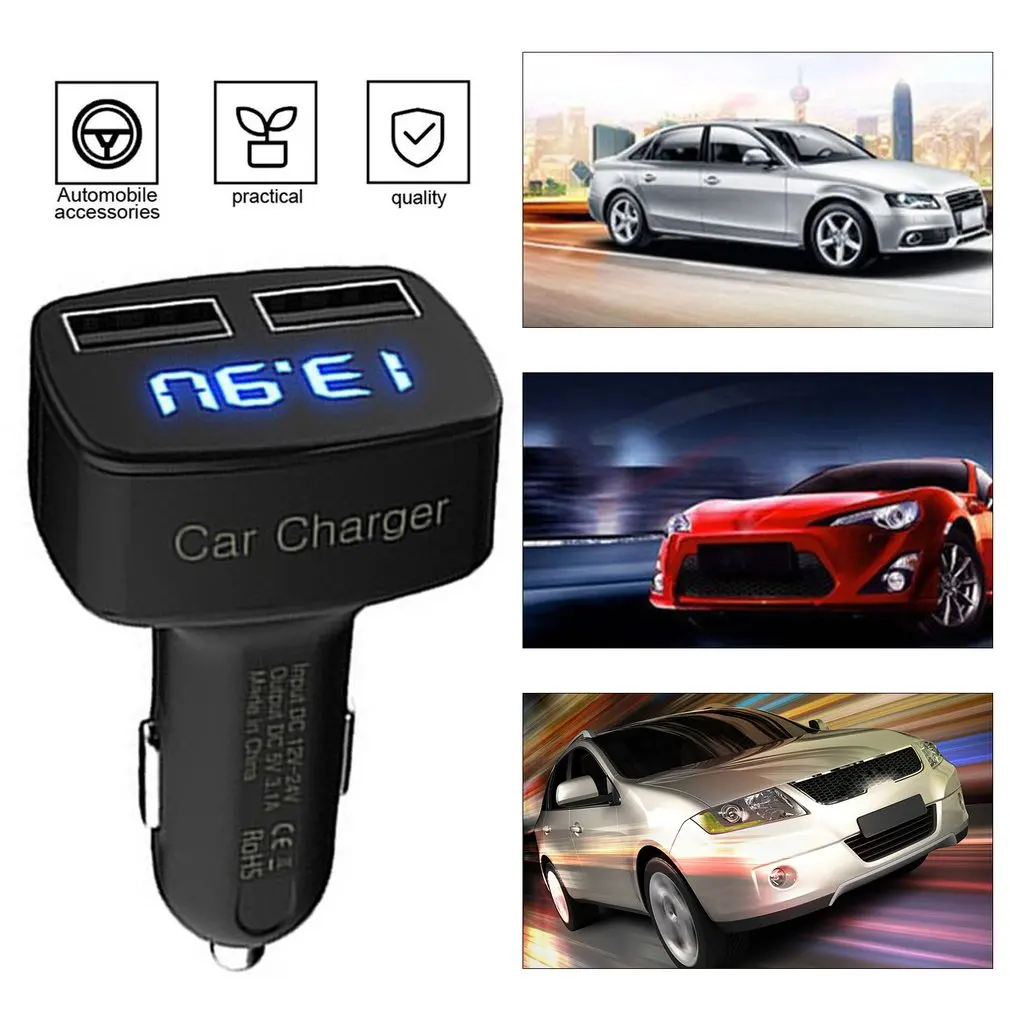 Автомобильное зарядное устройство 4 в 1 с USB-портом, автомобильное быстрое зарядное устройство с USB, автомобильное зарядное устройство, универсальный адаптер, измеритель напряжения, температуры и тока, тестер