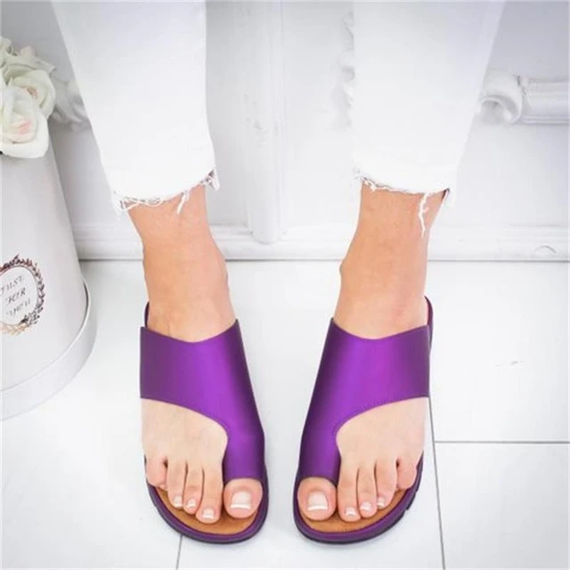 Сандалии женские ортопедические, модные босоножки из экокожи, однотонные, удобные тапочки, большие размеры, лето