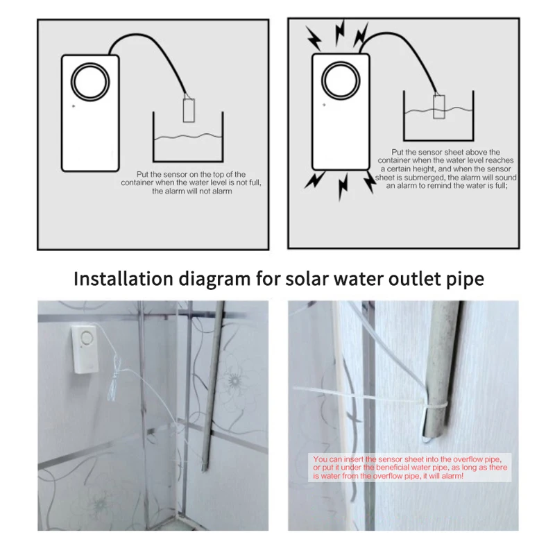 Нет кнопок, нет программирования, просто поместите его там, где вы хотите проверить утечку воды;