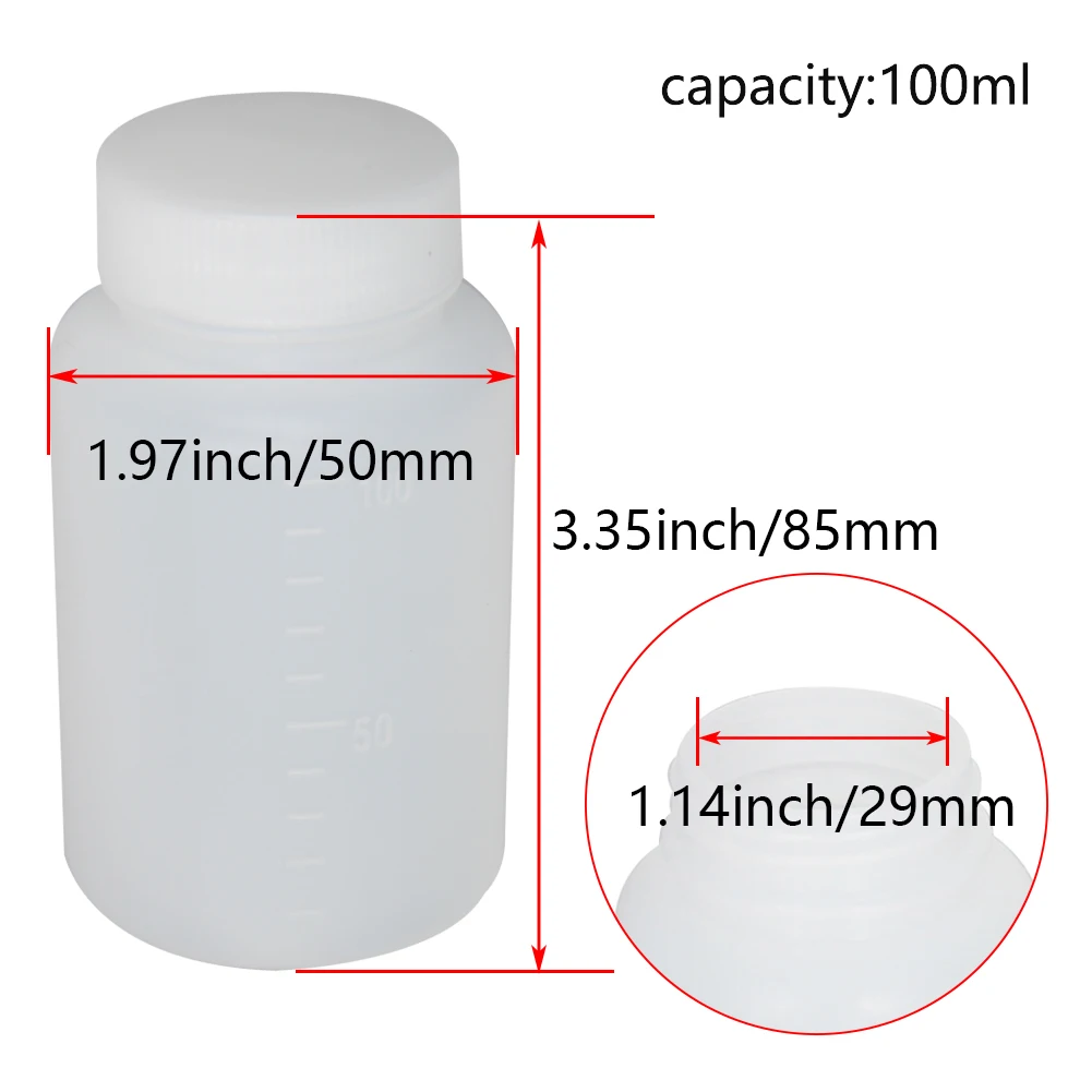 Описание:1. Дизайн. Цилиндрический корпус, отвертка, предназначенная для легкого и удобного открытия и закрытия, герметичная крышка защищает от утечки, не беспокойтесь, что содержимое будет проливаться.2. Преимущество. Нет вредных химических веществ и очень безопасно для использования, влаги, широкого спектра использования.3. Измерения. Поверхность бутылки имеет отметки по шкале. Корпус бутылки Прозрачный, легче проверить вещество или уровень жидкости.