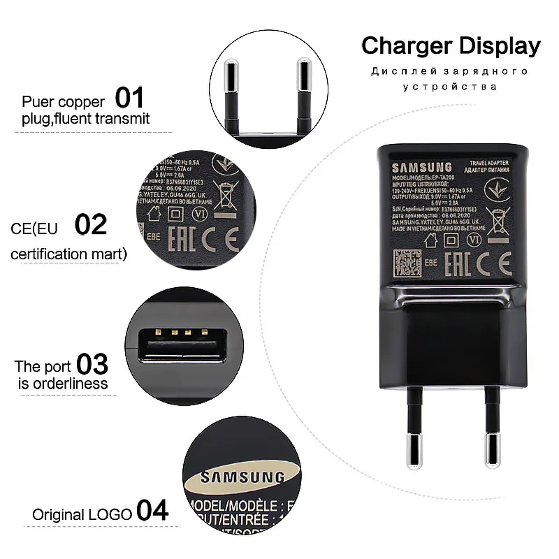 Особенности товара:-Быстрое зарядное устройство Samsung Galaxy-- Выход: 9 В 1,67 А-- Штепсельная вилка европейского стандарта США-- Кабель типа C 120 см 150 см 200 см 300 см-Цвет: черный/белый