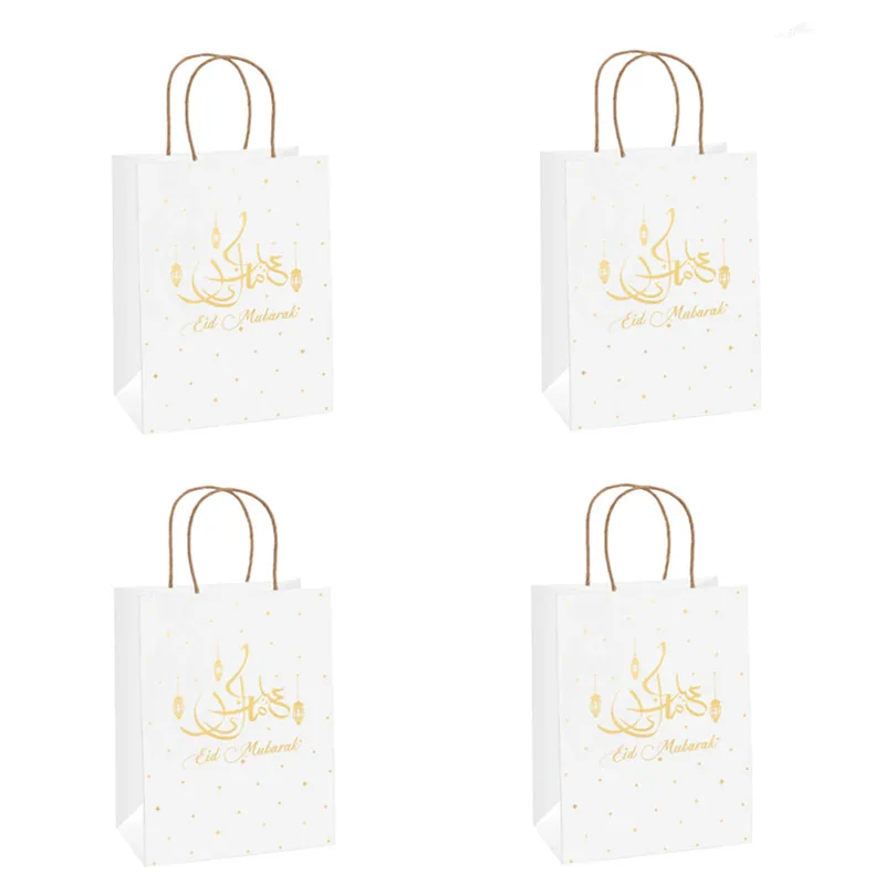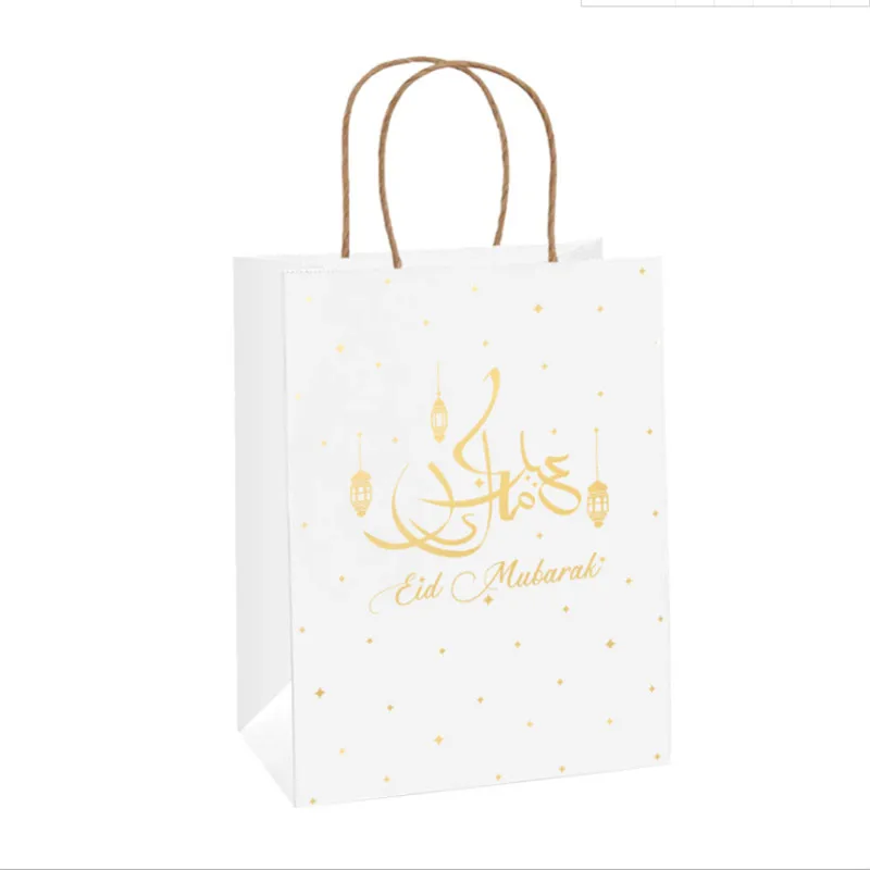 Белая Сумка-тоут Eid Mubarak для памятного Рамадана, пакет из крафт-бумаги, мусульманская сумка для упаковки подарков Eid Mubarak, мусульманская исламская вечеринка