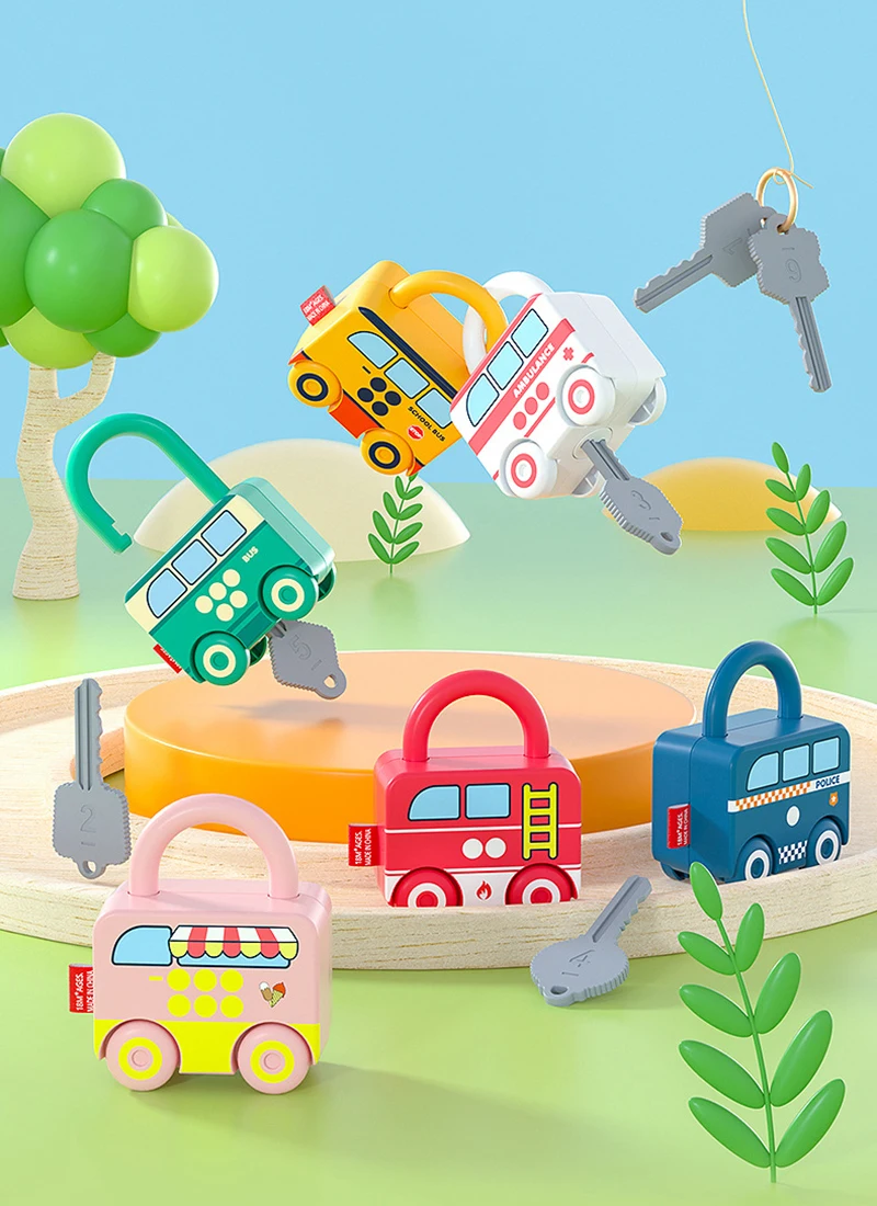 Montessori Children Toys Cartoon Car Unlocking Digital Key Matching Sensory Learning Game Educational Teaching Aids Toddler Toys