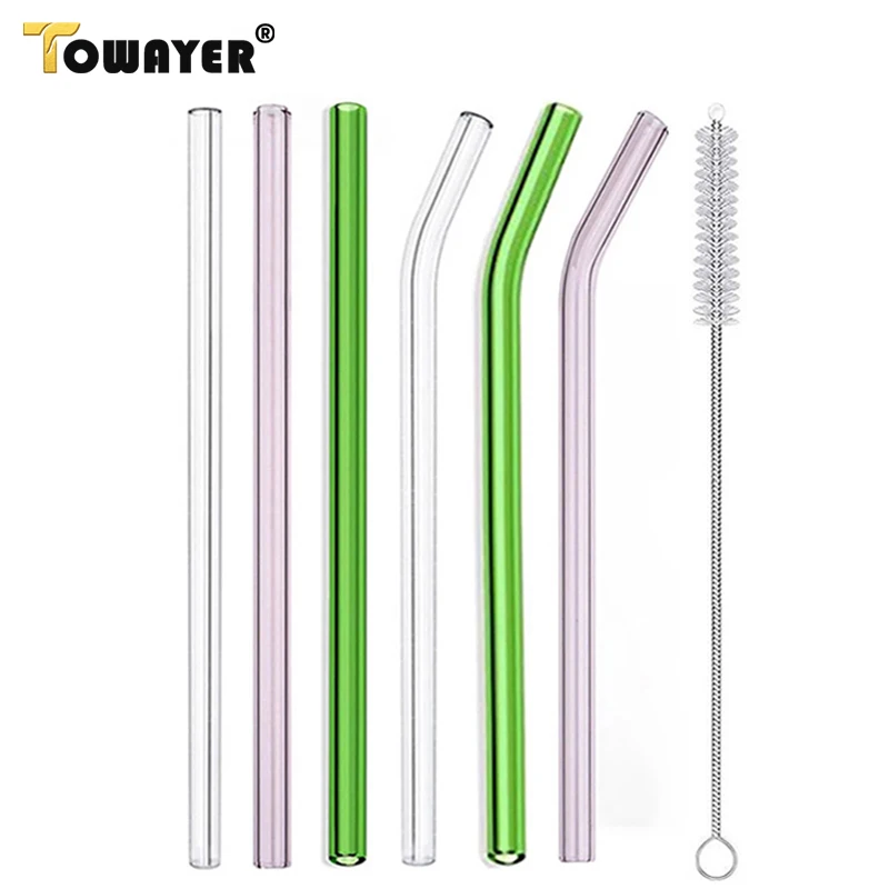 Соломинки для питья, стеклянная соломинка, Экологически чистая многоразовая соломинка для питья, изогнутая прямая стеклянная соломинка с щетками для коктейлей