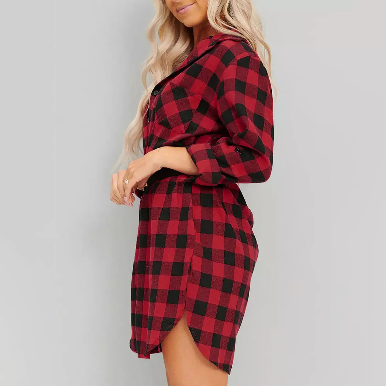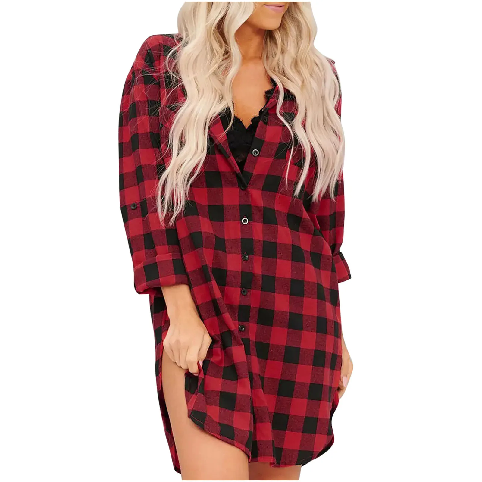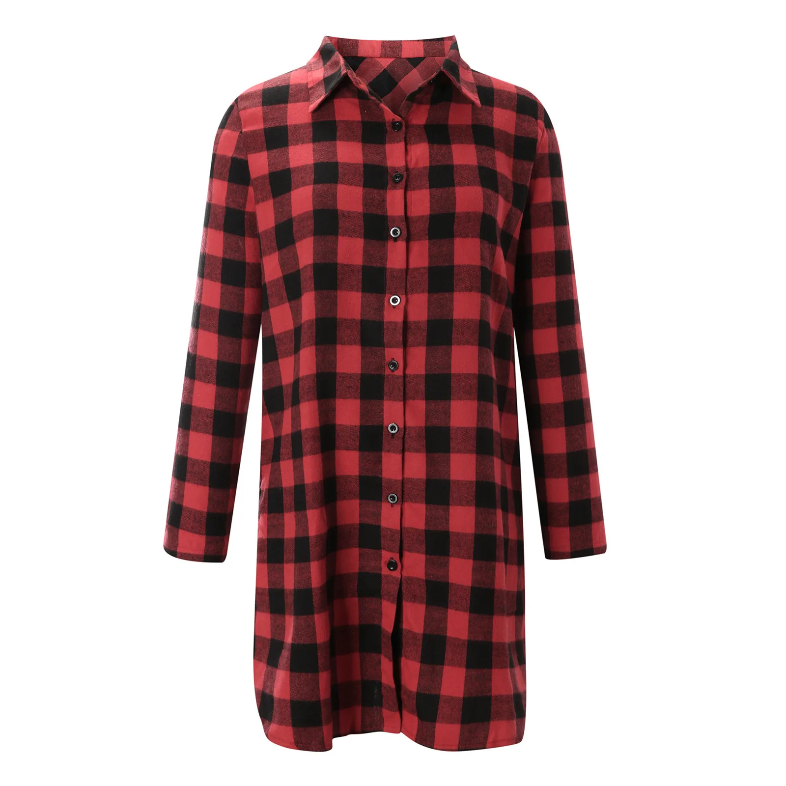 Женские топы с длинными рукавами, однобортный Кардиган с лацканами, рубашка, модная блуза в клетку на пуговицах, платье