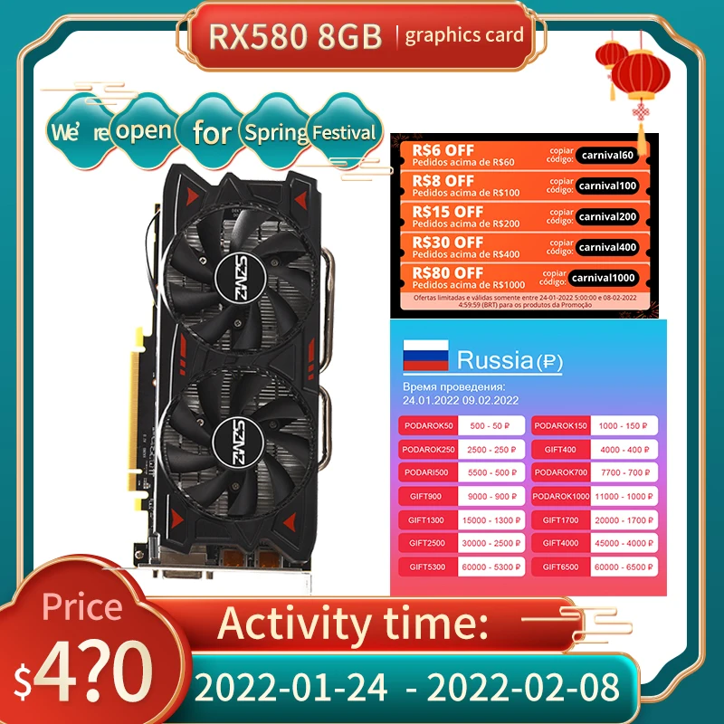 Оригинальная видеокарта SZMZ Radeon RX 580 470 570 8 ГБ GDDR5 256Bit видеокарта rx580 GPU 8 ГБ для майнинга без gtx 960 1050 1060 GP