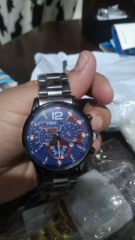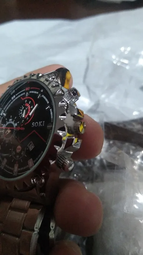 Отлично, красиво. Он отлично работает, вы не видите дефектов, когда смотрите на него близко, ни на браслете, ни на циферблате. У него есть время, день и месяц. Секундомер и будильник, хотя будильник звучит слабым. Рекомендуется. Быстрая доставка и прибытие в течение 10 дней. 5 5✨️..