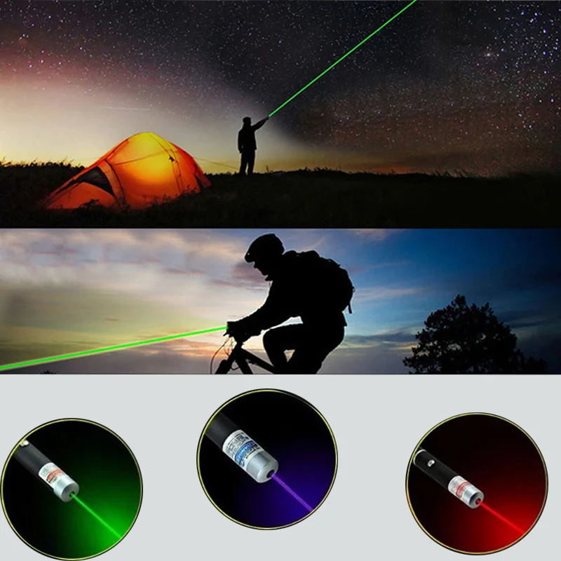 Лазерный диапазон: Красный: 500 метров, Зеленый: 500-1000 метров, синий фиолетовый: 10-100 метров