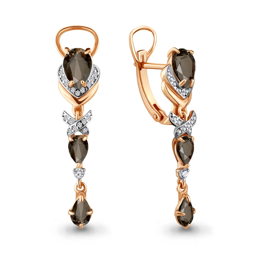 Серьги тренд 2022 NOVOZOLOTO серебро подлинное 925 пробы, кварц дым...