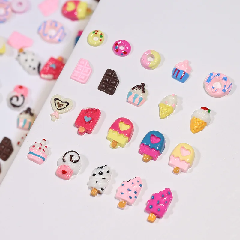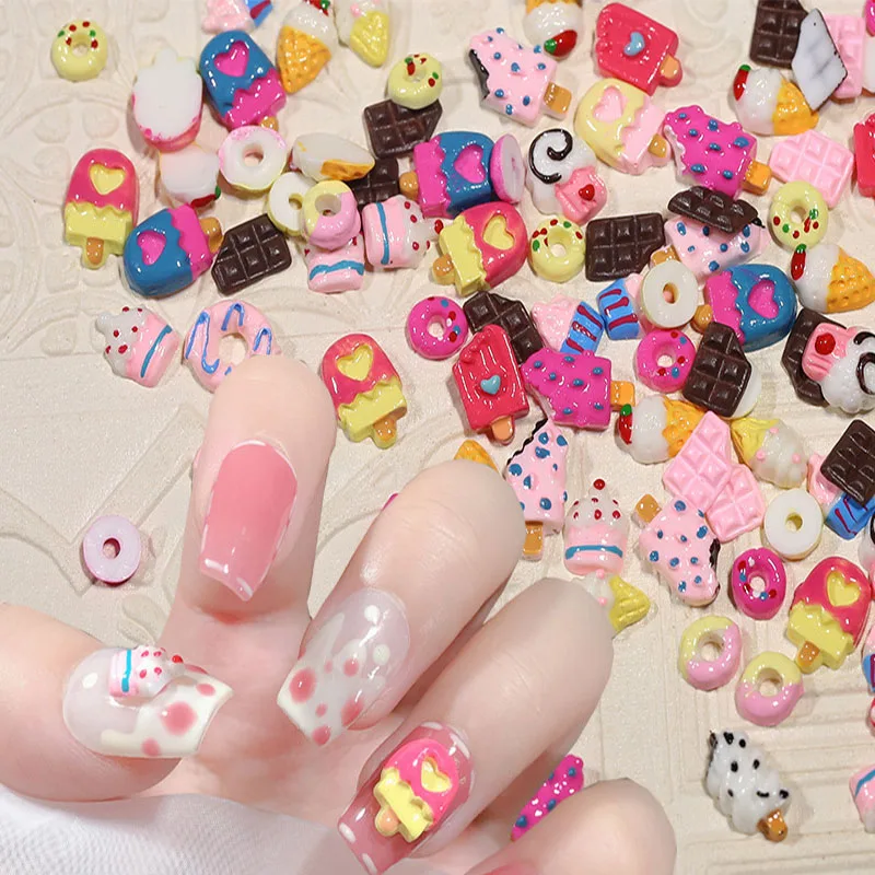 100 шт. смешанные милые 3D Подвески для акрилового маникюра, мороженое, конфеты, дизайн ногтей, подвески для дизайна ногтей, лак для маникюра, материалы для ногтей