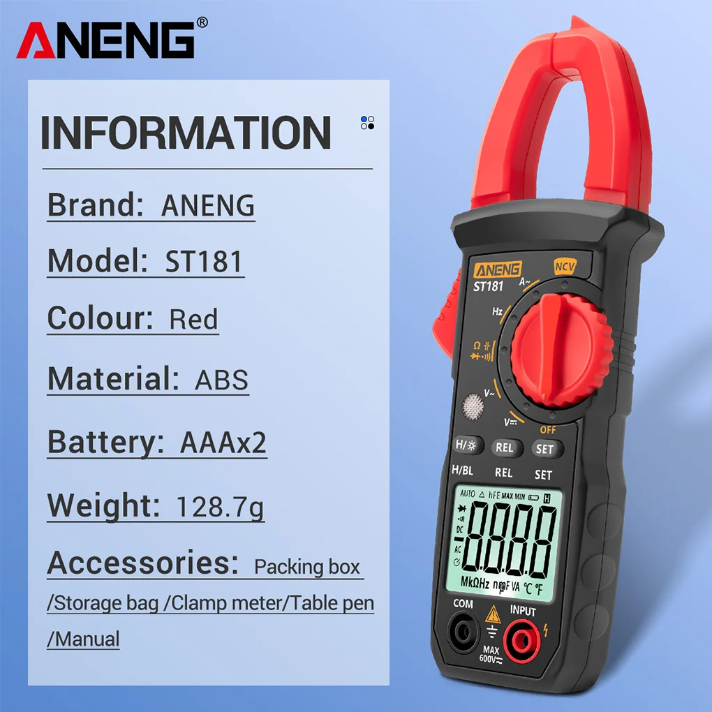 ANENG ST181 мультиметр-зажим Цифровой дисплей детектор напряжения тока авто-выключение ремонт тестер портативный карманный измерительный прибор