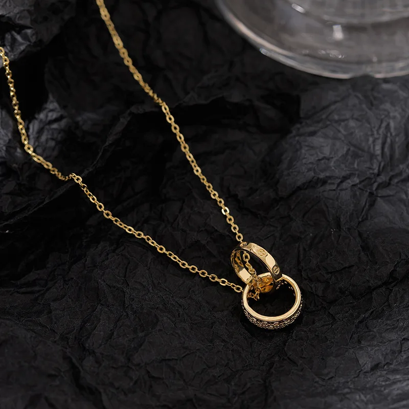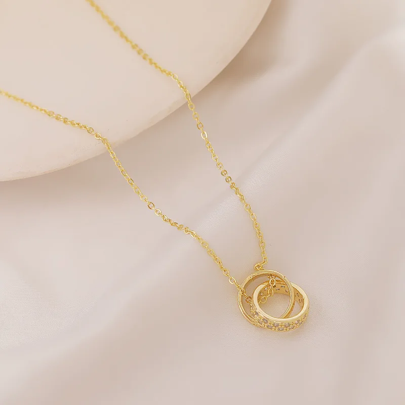 Женское Ожерелье с двойным круглым кулоном Стразы с позолоченными кристаллами, женское колье-чокер до ключиц, ожерелья для женщин, ювелирные изделия