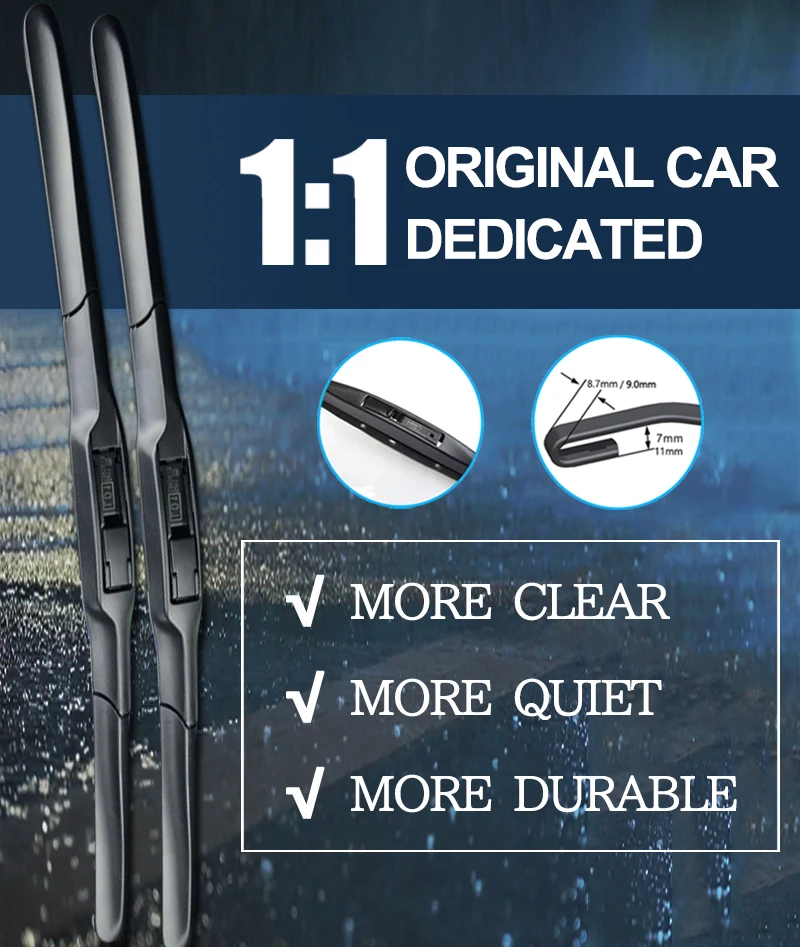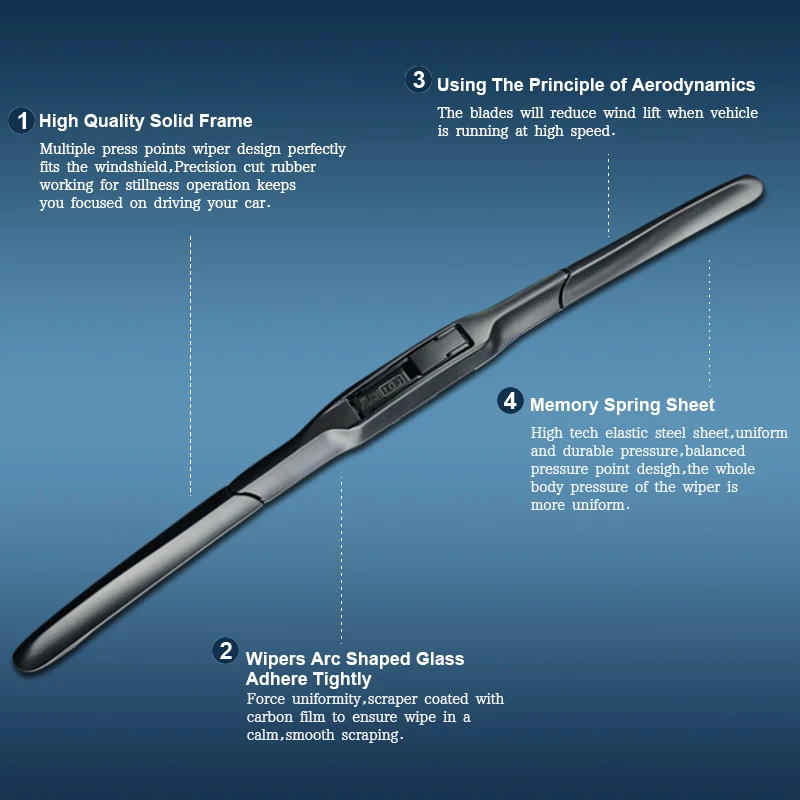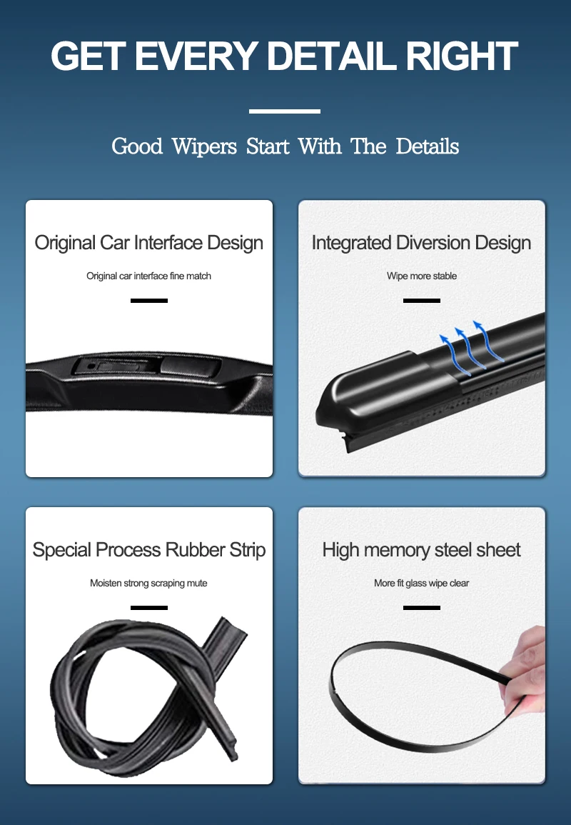 Характеристика:1. Стальной лист с памятью из высокоуглеродистой стали равномерно рассеивает давление, чтобы достичь бесшовной посадки с лобовым стеклом автомобиля, достичь испытания на соскабливание без шума и сохранить тест на соскабливание чистым.2. Сделано из чистой натуральной резины, мягче и долговечнее, всплывающие тефлоновые технологии, чтобы предотвратить старение быстро. Наши дворники против экстремальных холодных снежных штормов.3. Конструкция дефлектора на основе аэродинамических принципов. Вибрация автомобильного стеклоочистителя, вызванная силой ветра, устранена.